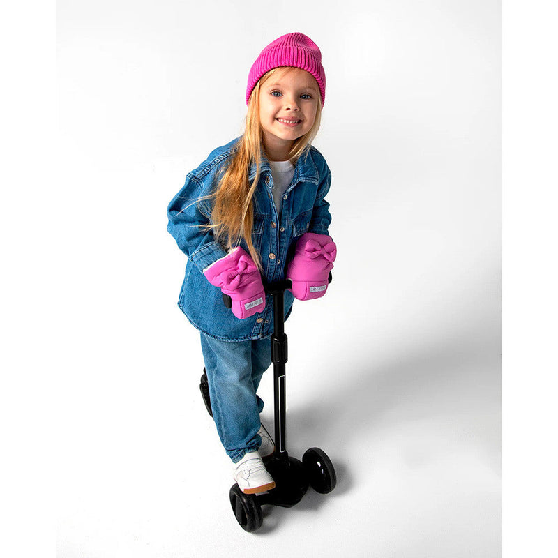 Kids Warmmuffs® Bows make “runaway mittens” a thing of the past—and keep little hands toasty even on the most frigid days of winter. These cozy and durable Bows Warmmuffs are water-repellent with an ultra soft plush lined interior. But what really makes them special is their ingenious design— they attach right onto any scooter handlebar. Kids can slip their hands in to stay warm on their ride, and then slip them out seamlessly. You’ll never have to go searching for your kiddo’s missing gloves again!