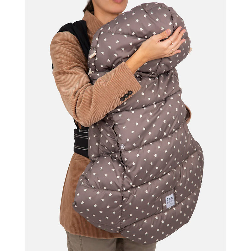 K for Kangaroo & Koala – this unique 3-in-1 winter cover is designed for ergonomic baby carriers where little ones sit like a marsupial with legs wrapped around your body, and it also universally adapts to strollers and car seats. The cover features an ultra-soft plush lining, a water-repellent outer shell, and premium poly insulation to keep baby warm and comfy all winter long. An adjustable hood can face forward or outward, hand slits allow easy access to baby, and bottom snaps extend length as baby grows.