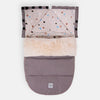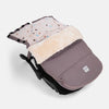 The PlushPOD boasts an anti-slip, removable back panel—eliminating extra fabric between baby’s back and the safety harness—a convertible hood with an oversized collar, plus a double lined hood that slips over the top of the stroller to keep the footmuff from slipping while on your winter walks.