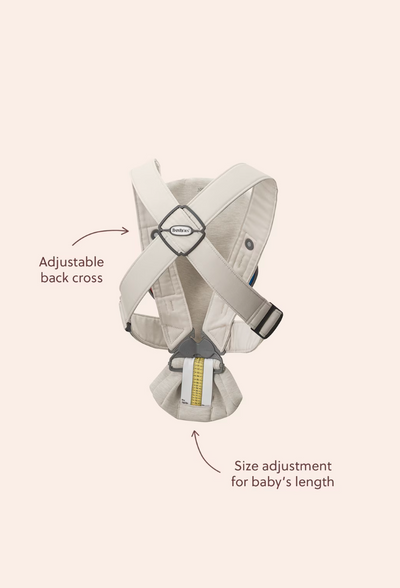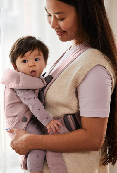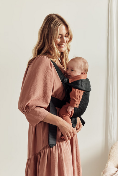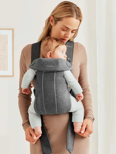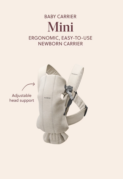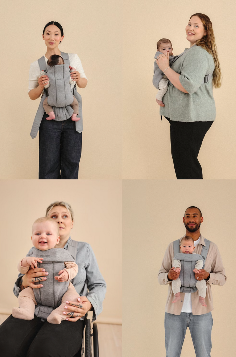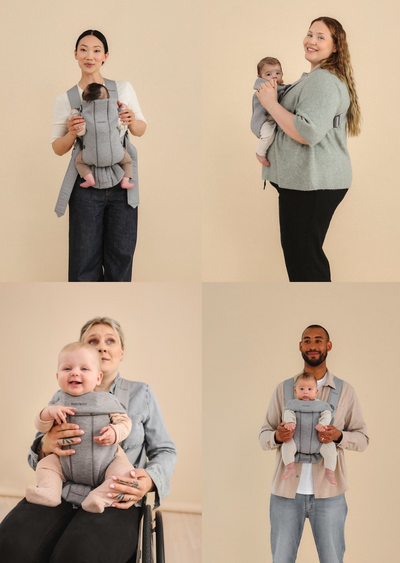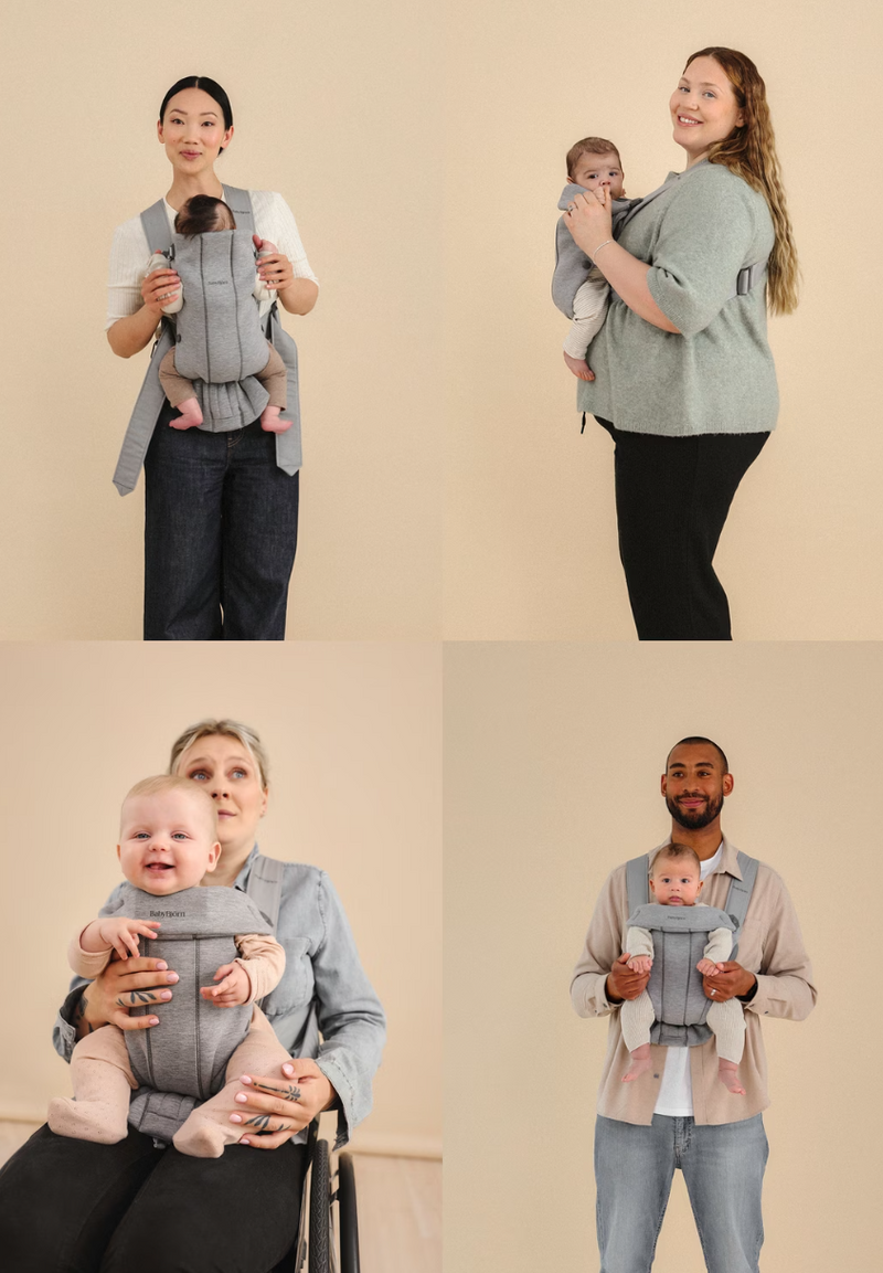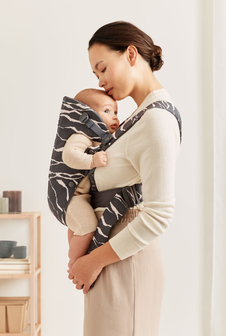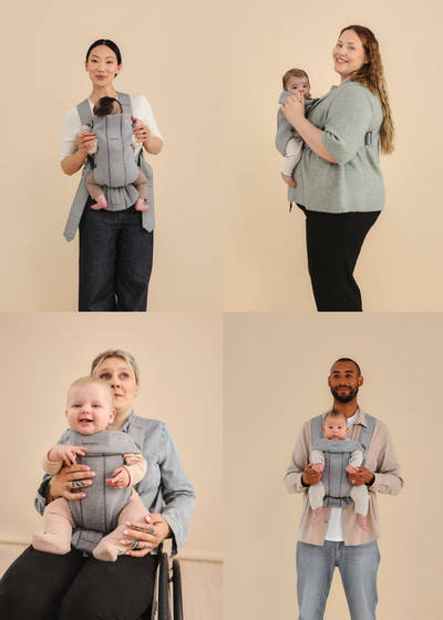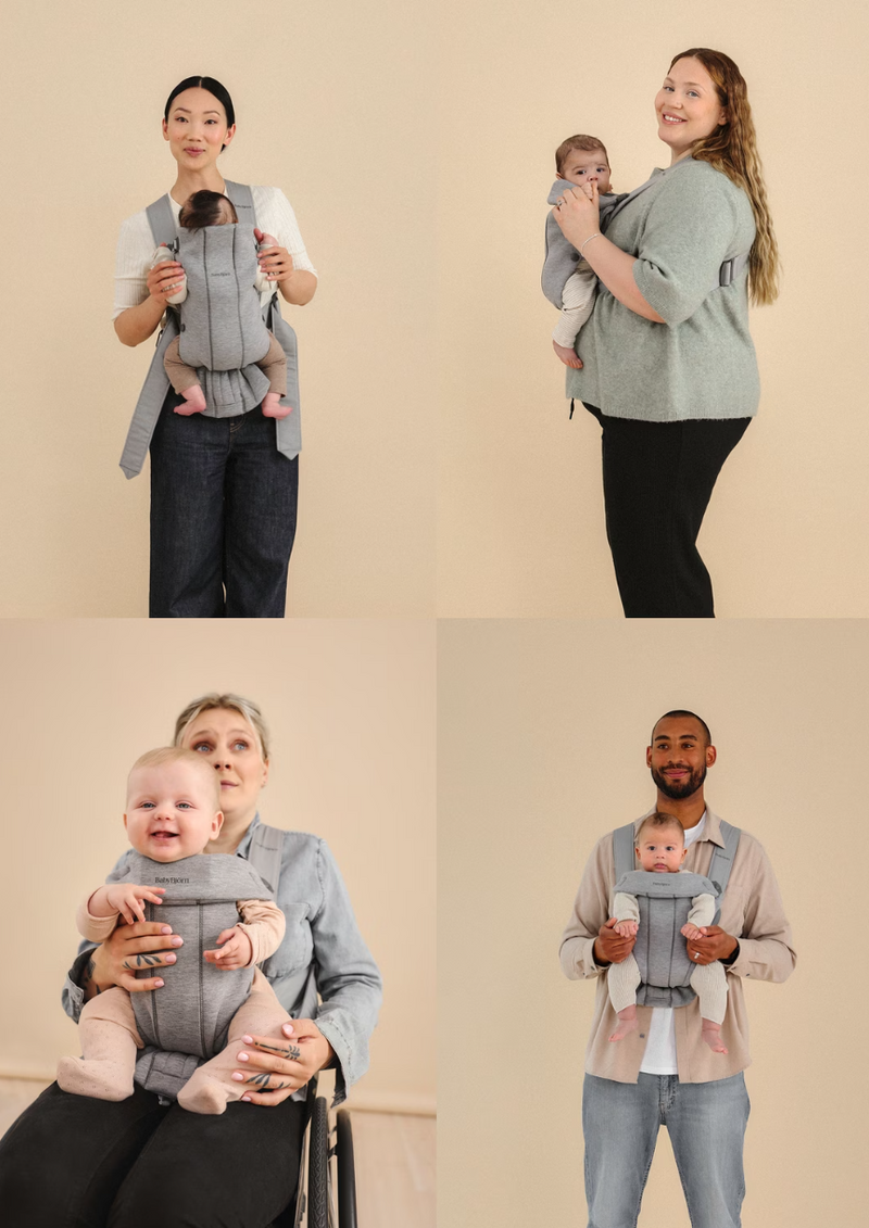 Baby Carrier Mini is available in four super-soft materials: 3D jersey, 3D mesh, satin-woven cotton and a soft and lustrous woven blend —all developed to enhance the closeness between you and your baby.