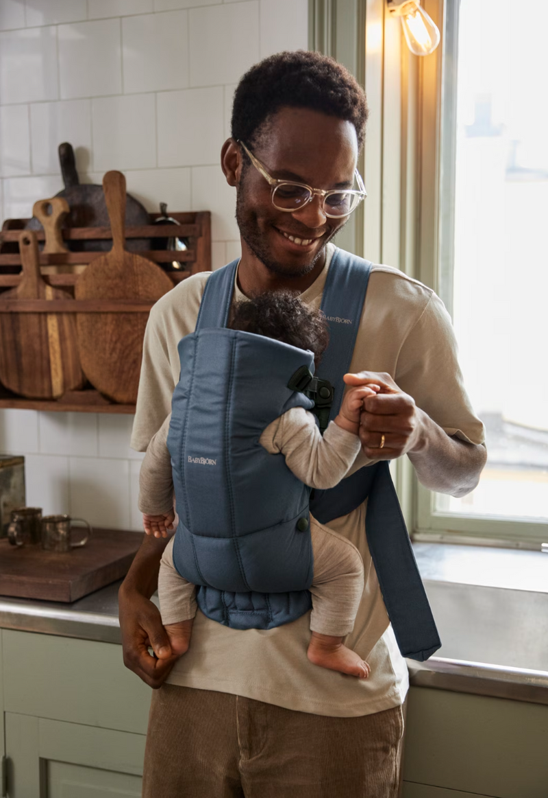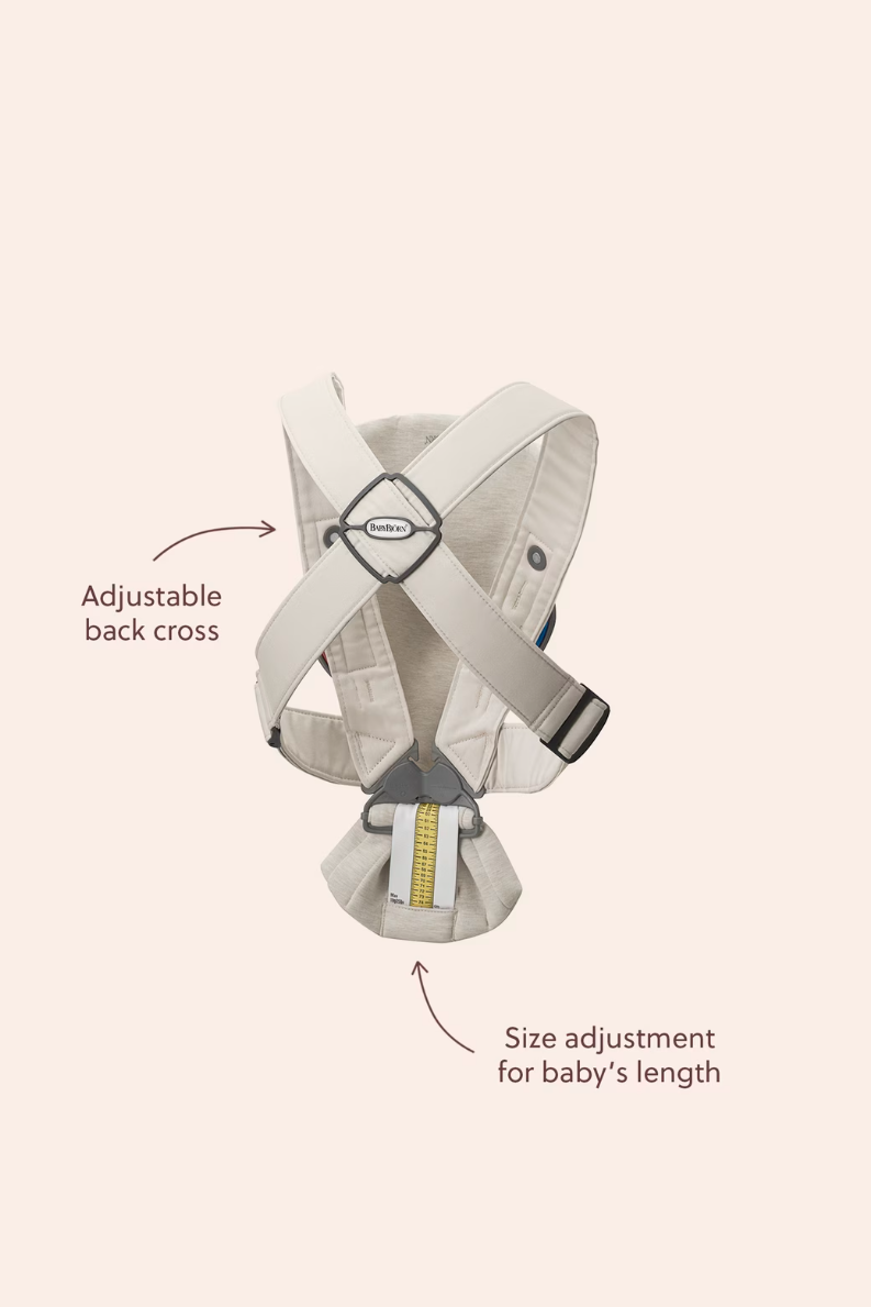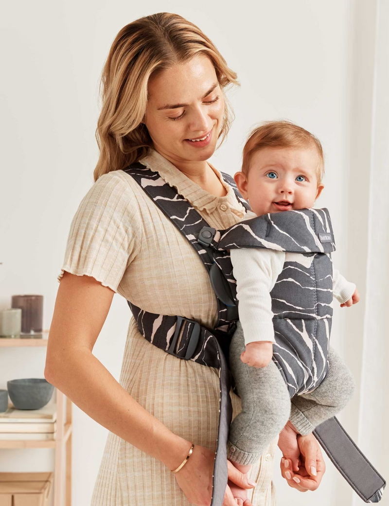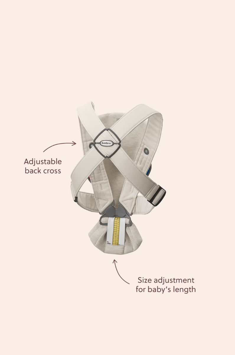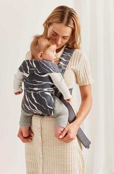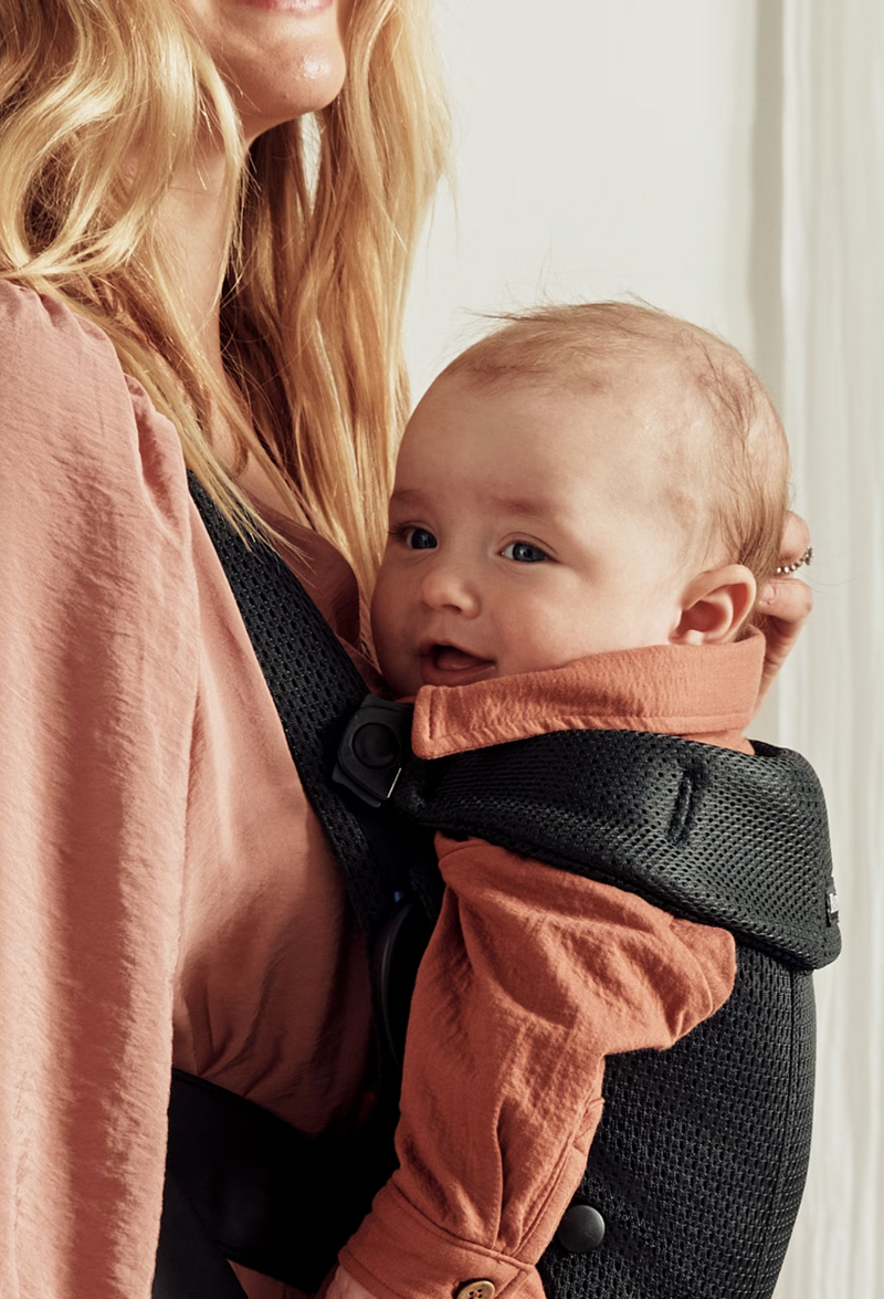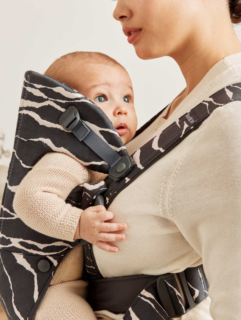 Baby Carrier Mini is available in four super-soft materials: 3D jersey, 3D mesh, satin-woven cotton and a soft and lustrous woven blend —all developed to enhance the closeness between you and your baby.
