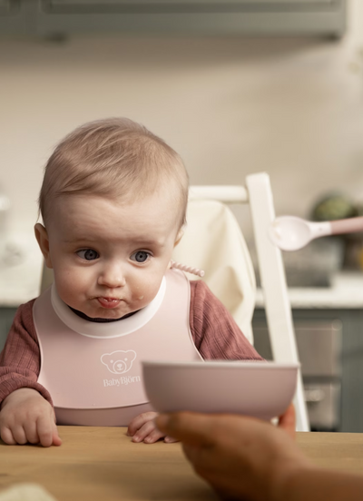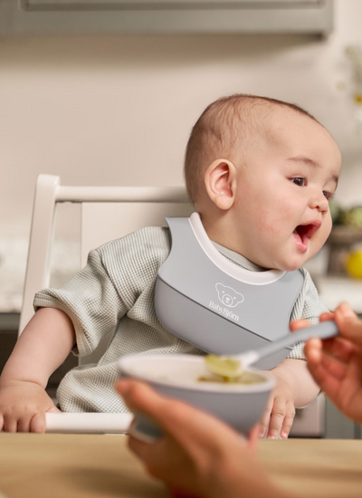 Baby bib: Wipe the baby bib with a damp cloth, rinse under running water or wash in the dishwasher.