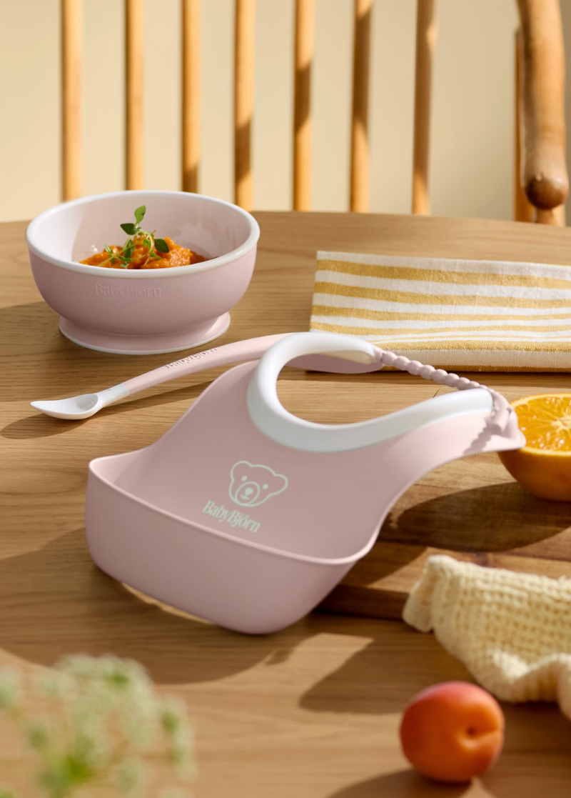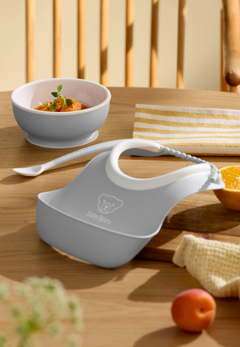 This set is perfect for young children just beginning to taste solid foods but are still being fed by a parent. It includes all the essentials for introducing your baby to solids: a sturdy bowl that is easy to hold in one hand (so you can feed with the other), a feeding spoon with a long handle, and a comfy bib to catch any mess.