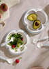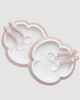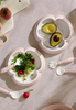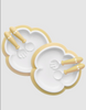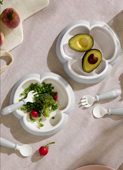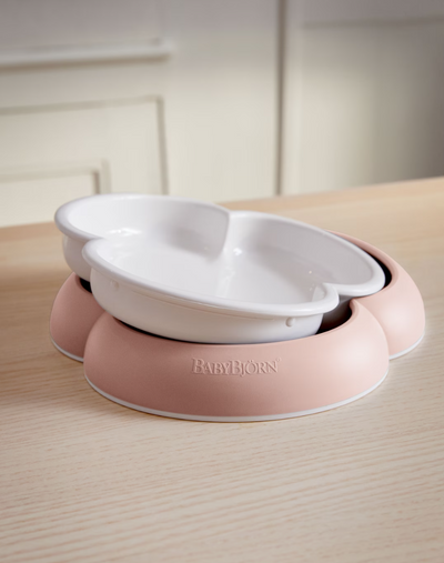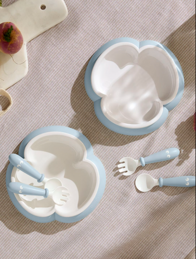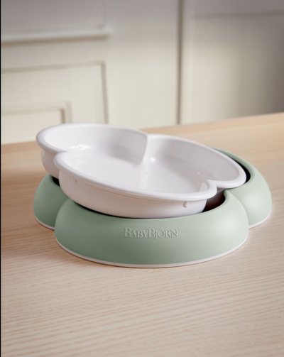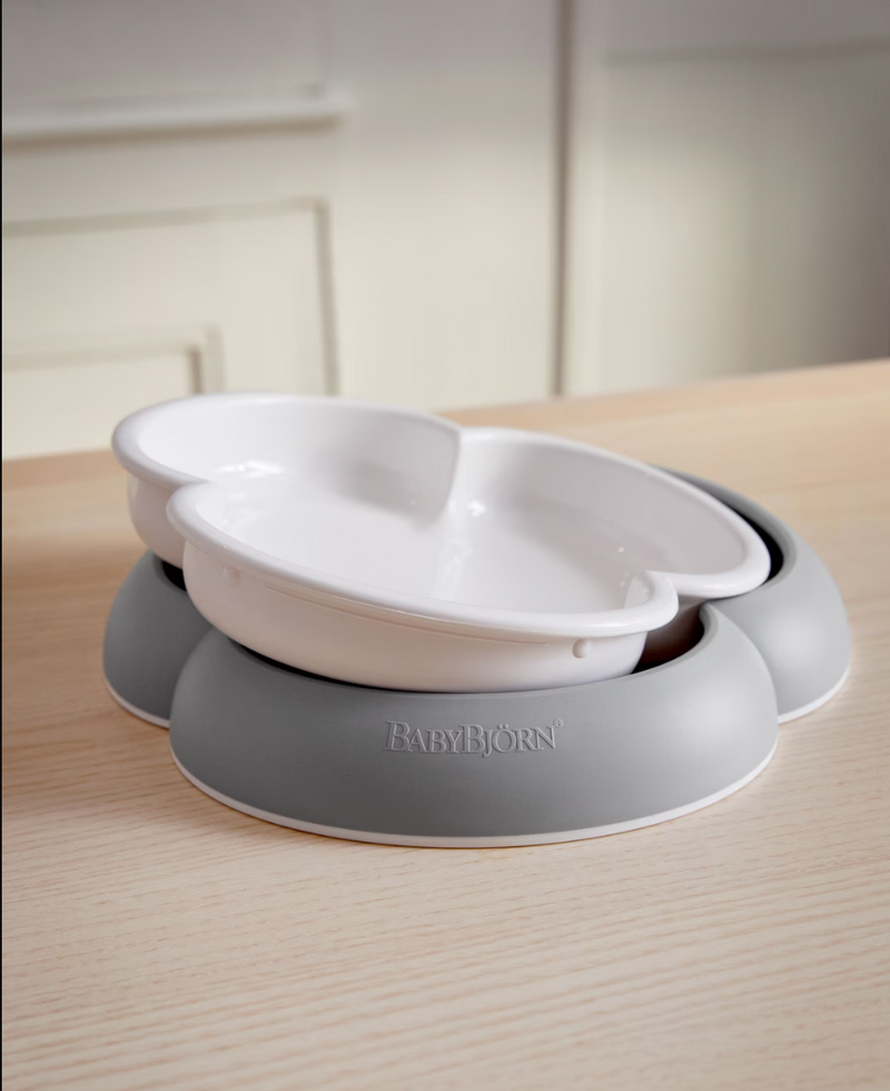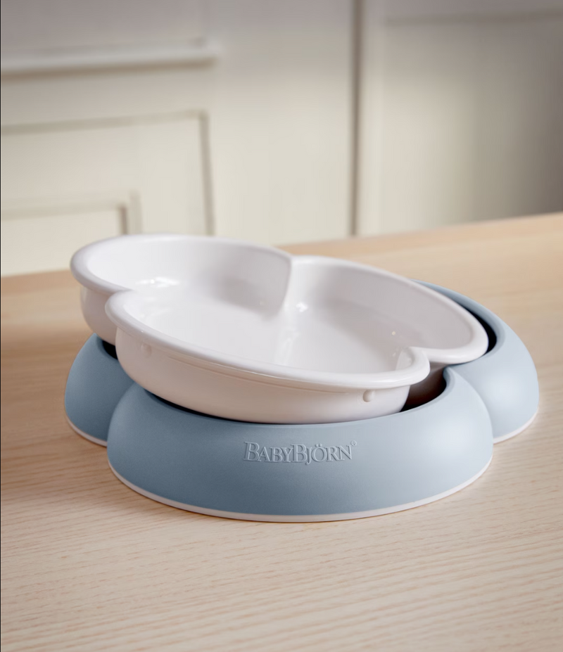 Two sturdy plates in a trefoil design that makes scooping up food easier