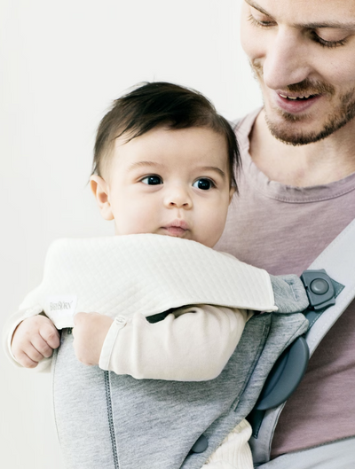 Bib that keeps your baby carrier like new for longer, so you won’t need to wash it as frequently. Perfect when your baby sucks or dribbles on the baby carrier. The absorbent bib has a waterproof membrane that acts as a moisture barrier and keeps your baby carrier dry. The bib’s soft Tencel surface feels comfy against your baby’s mouth and cheeks, and it is guaranteed free from harmful substances. Fits Baby Carrier Mini, Free, Miracle and Original. Pack of 2.