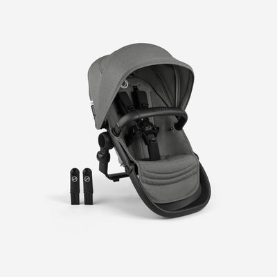 Turn your Bugaboo Kangaroo into a double stroller with the Kangaroo Sibling Seat! With included adapters, your toddler can now ride comfortably in the lower position, while you and your baby stroll above. Expand your strolling possibilities with the Kangaroo Sibling Seat.