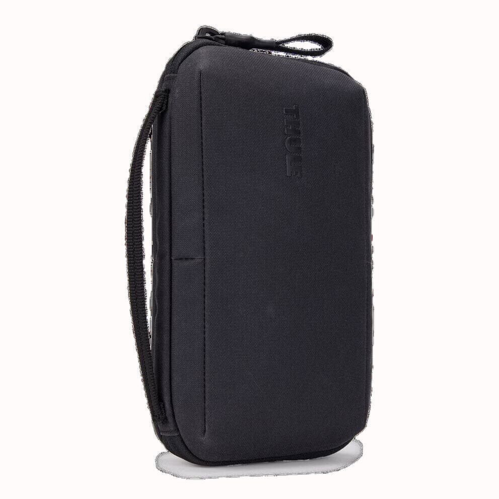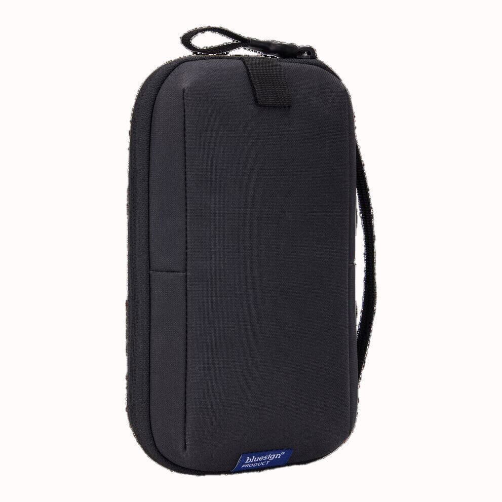 A multi-purpose, 2-in-1 pouch that can be separated into a travel wallet and an electronics organizer.
