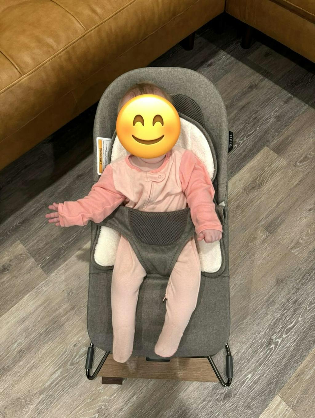 We’ve used this bouncer for a few weeks now and really do love it. My 7 month old fit perfectly and had enough support. He looked comfortable and enjoyed being able to use for lounging or bouncing. I appreciated the fact that the recline features face the parent, as opposed to how it is set with other bouncers. It was relatively easy to use and adjust the 3 levels. It folds up so easily! We can store behind our couch, against the wall, wherever when not in use. I love how easy to clean the fabric is (major win for a little guy who spits up often). The wooden details make it look nicer than other bouncers. We don’t mind leaving it out since it matches our aesthetic. The cozy insert will be great in the colder months. We love this thing!