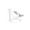 Rock stop foot flips down to turn your rocker into a stationary place for baby to rest