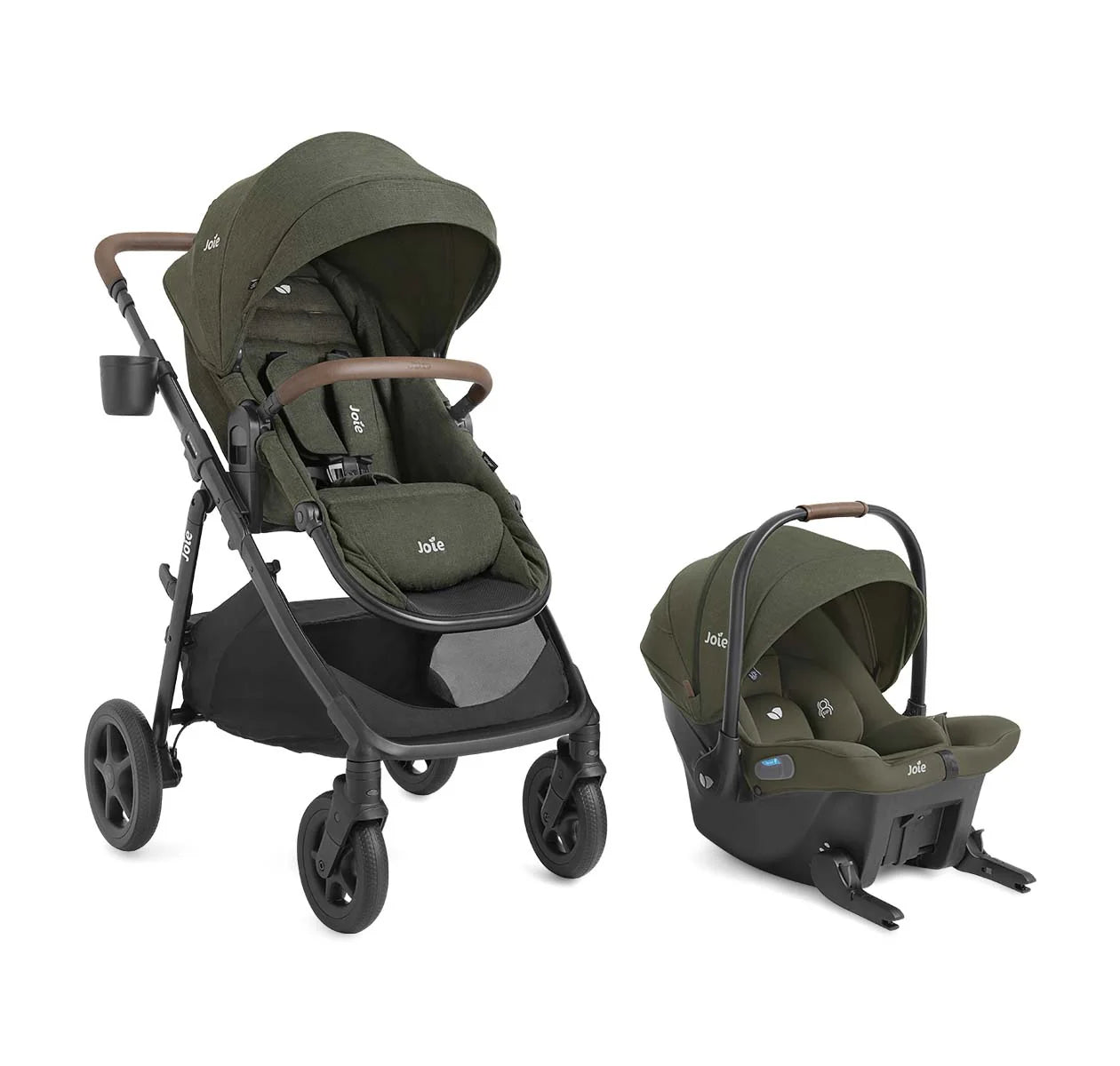 Evergreen Joie Ginger Stroller with Mint Latch Car Seat - 3/4 View | Strolleria