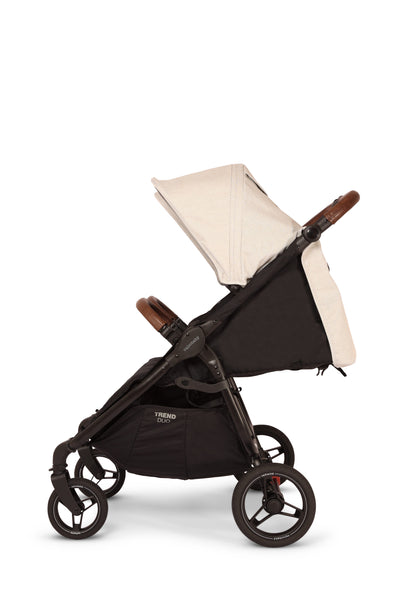 Both stylish and functional, the Trend Duo lightweight double stroller features a one-hand easy compact fold, two independent reclining seats and footrests plus extended canopy protection, The Trend Duo is not only a great travel stroller but also ideal for daily errands, walks, family trips and getting around town.