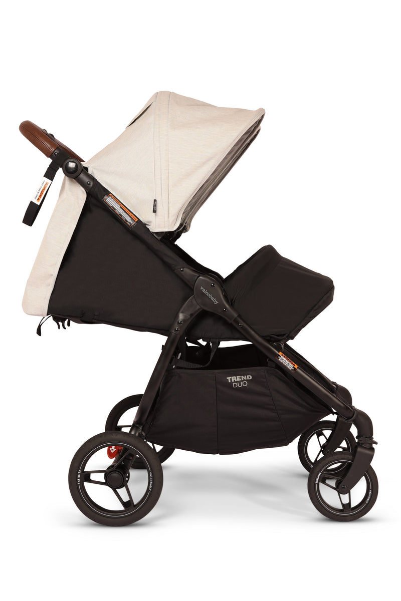 The Trend Duo Double Stroller is suitable for both infants and toddlers and works with most car seats brands using the car seat adapter(sold separately), and accommodates either one or two bassinettes (sold separately)