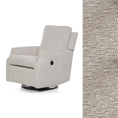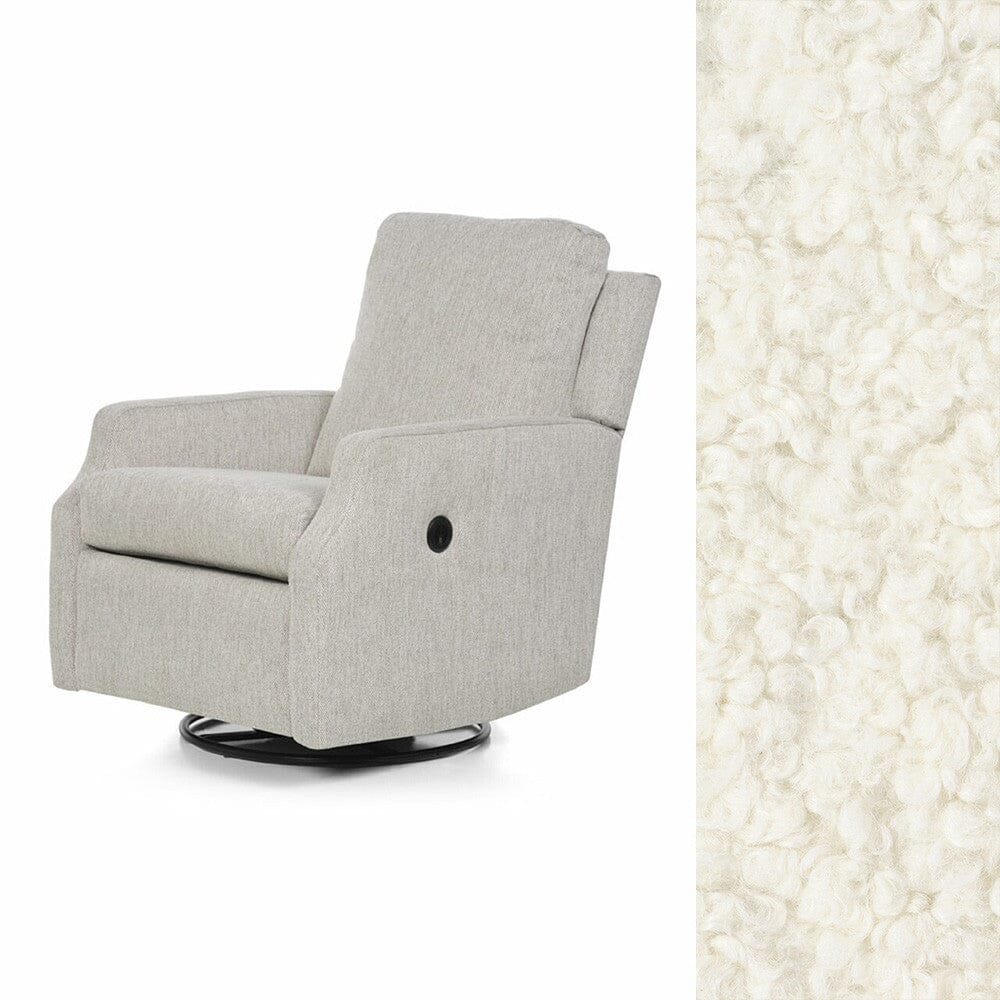 Available in a wide selection of high-quality fabrics and textures, this recliner offers durability and aesthetic appeal to suit your décor. Swatches are available to help you choose the perfect finish, ensuring a seamless fit in your living space or nursery.