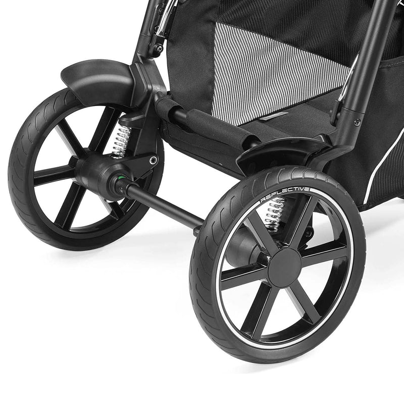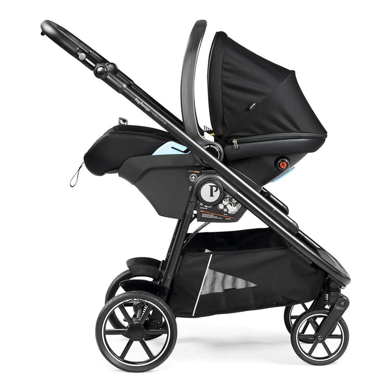 The Veloce only weighs 23.75 lbs. and at 20” wide passes through doorways and elevators with ease. The reversible seat takes baby from birth to toddler, up to 50 pounds.