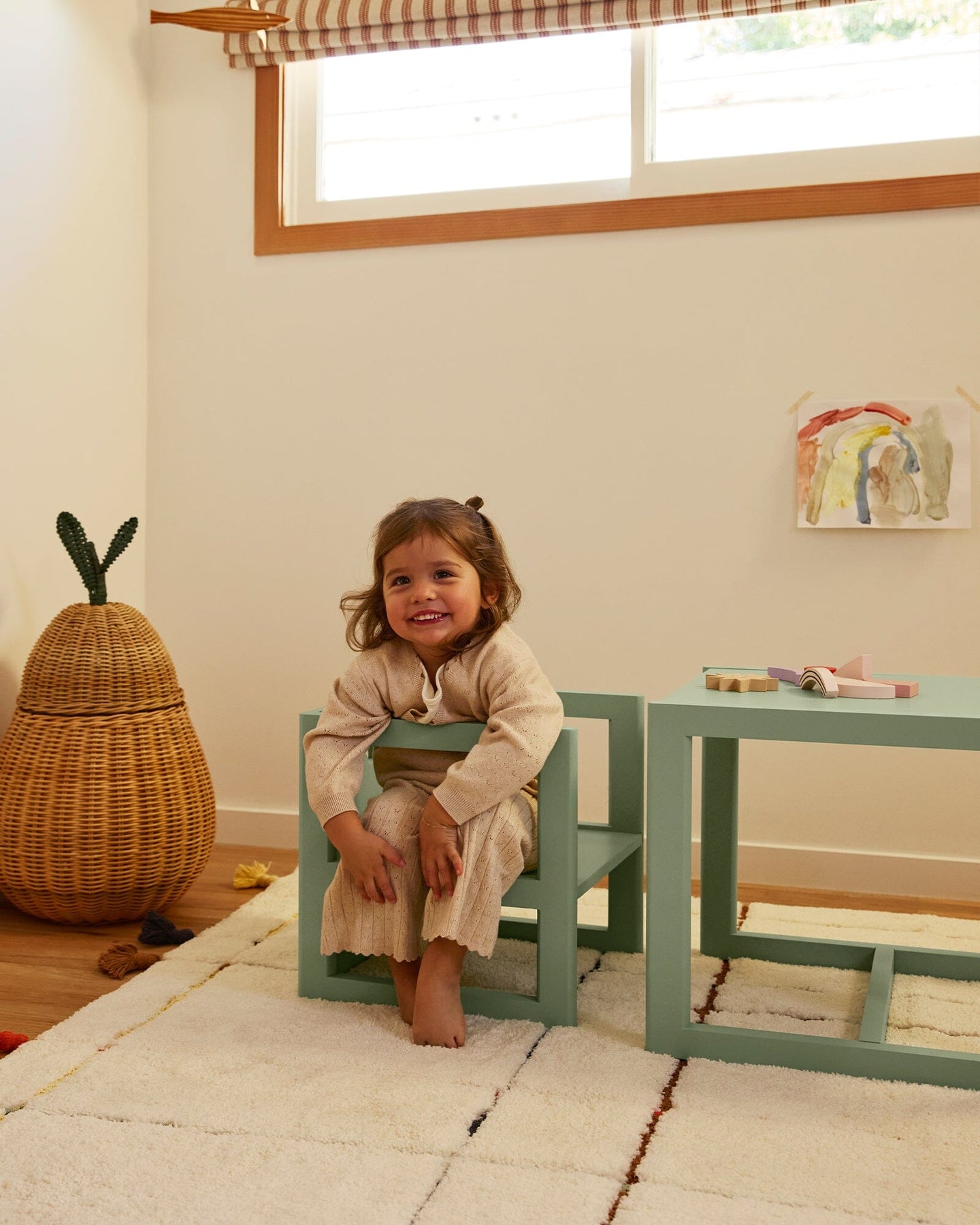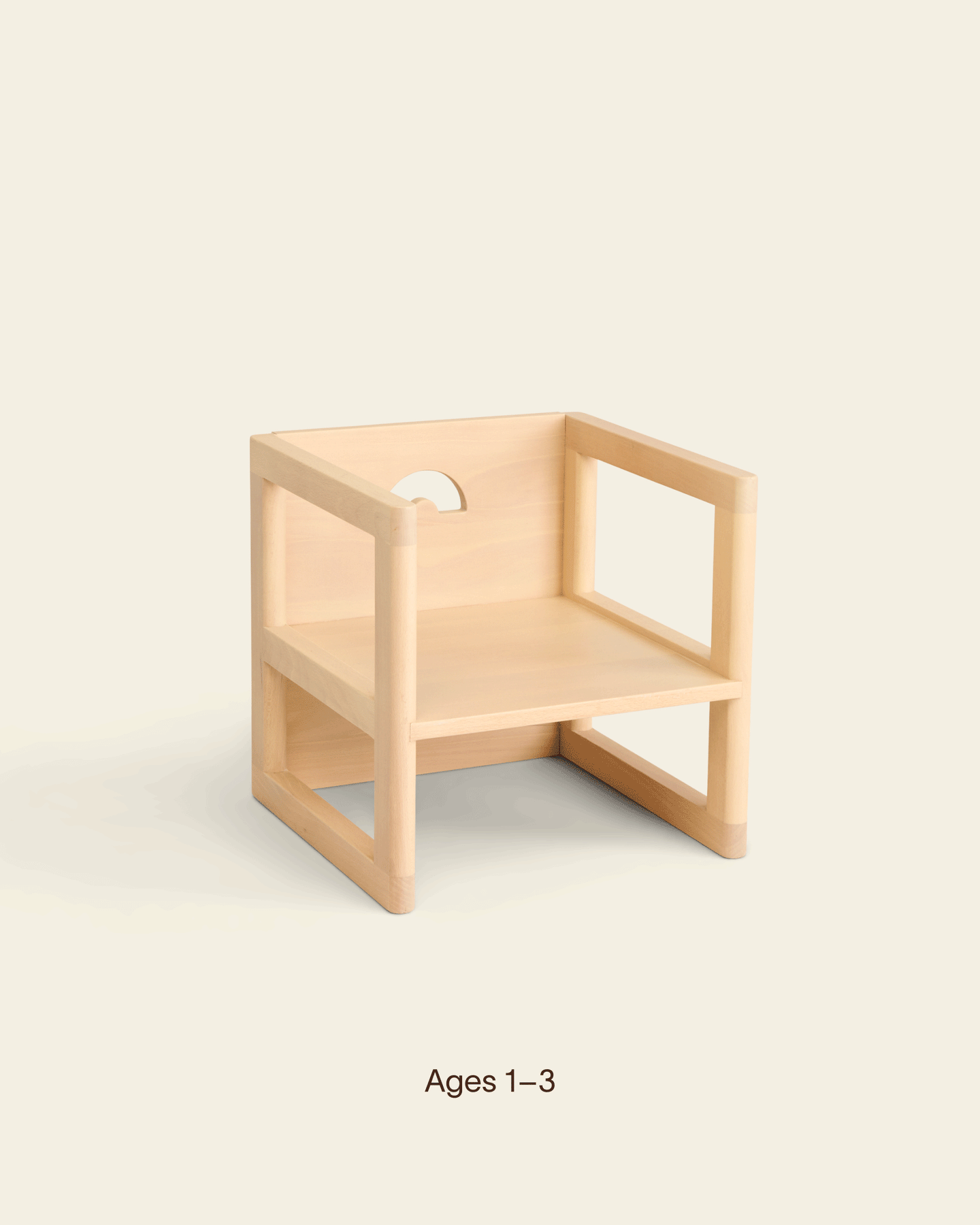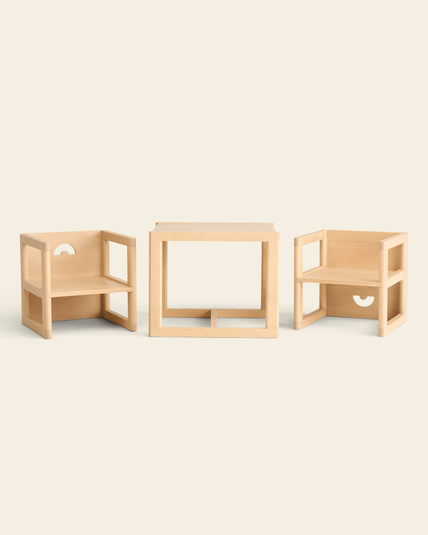 Designed with both function and timeless style in mind, this weaning chair and table set supports your child’s early development as they transition to solid foods and greater independence. Crafted from real, solid wood, it offers a sturdy and safe space for eating, playing, and learning. The thoughtfully designed set grows with your child and is available in standard and large sizes to fit your space. Made from FSC® European solid beech wood, it features a non-toxic, 0-VOC finish and is GREENGUARD Gold Certified for healthier indoor air quality.