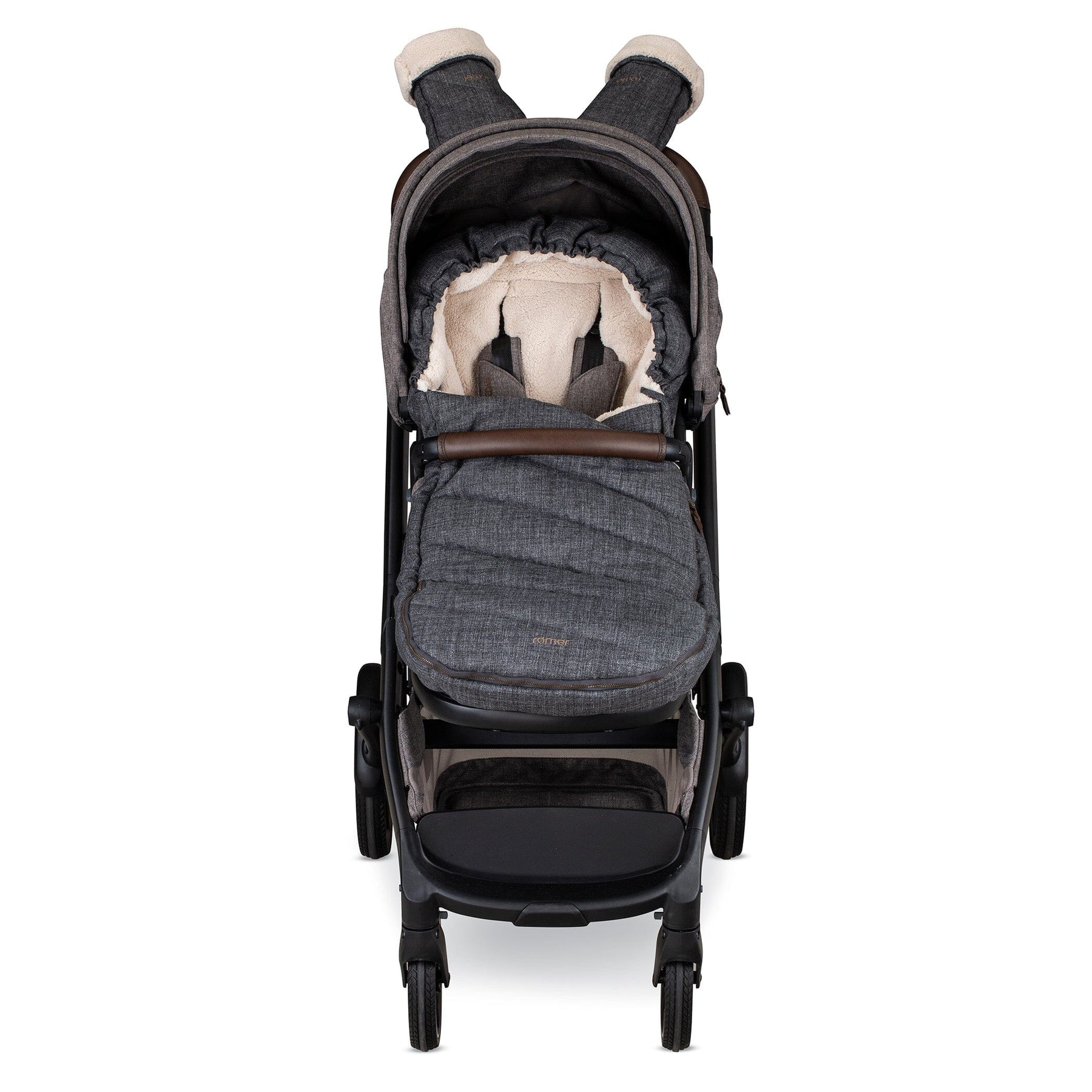 The Romer® Winter Kit offers the ultimate blend of comfort and style for a refined strolling experience. The insulating footmuff helps keep your little one bundled up and cozy, while the mittens help keep your hands nice and warm. Designed to match the Tura™ stroller, the footmuff and mittens are crafted with subtle elegance and luxurious fabrics. Both accessories feature a stylish and water-resistant outer layer made from recycled materials, plush inner padding, and a soft sherpa interior layer for coziness and warmth. The footmuff attaches easily to your Tura stroller with fabric loops, and the mittens have built-in magnets to keep them in place on the stroller handle. The footmuff and mittens are both safe to machine wash and dry for simplified cleaning.