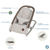 The Maxi-Cosi Kori 2-in-1 rocker features a modern design, lightweight and supportive, easy to adjust from stationary to rocking, and the fabrics are machine washable. No matter what you need to do around the house, you can rest assured knowing your baby can sit or rock away in peace. From the first days after birth to many months later, your baby can lay back in luxury or be a part of the action in the Kori.