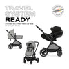 Add any Cybex infant car seat and enjoy all-terrain wheels, front wheel suspension, and an oversized shopping basket. Transition from drive to stroll with eas