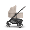 Integrated foot barrier for carriage mode to use with baby from birth. Simple triggers for an ultracompact fold with footrest and bumper bar seamlessly tucking in. Sleek, streamlined design offering effortless maneuverability from newborns to toddlers. Enhanced FlexRide Suspension for smooth maneuverability on any surface.