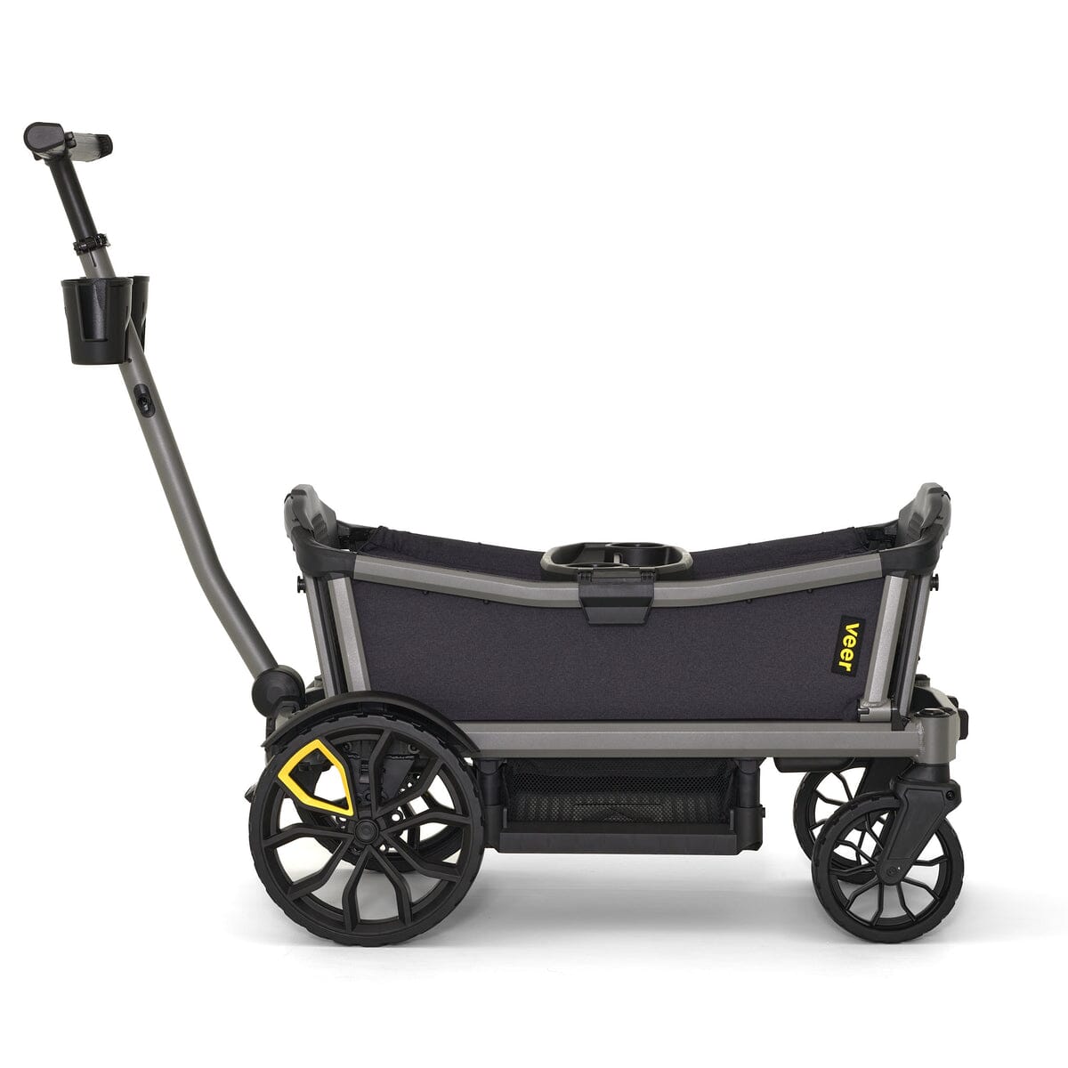(1) Veer Cruiser City: Perfect for families that love to push on sidewalks, paths and through local attractions. Cruiser City features swivel wheels furthest from the handle, which enable it to be steered like a traditional stroller when pushing on smooth terrain. But don't worry, the handlebar can still drop into wagon mode for pulling over uneven terrain. Cruiser City comes equipped with 2 Cup Holders and a Drink ; Snack Tray as well as seating for two.