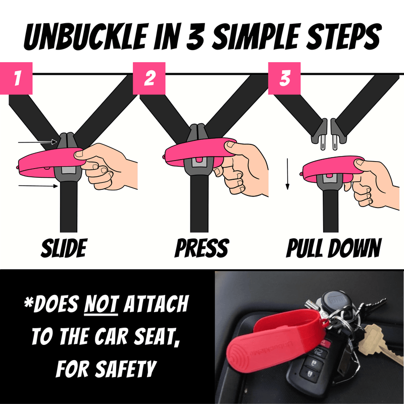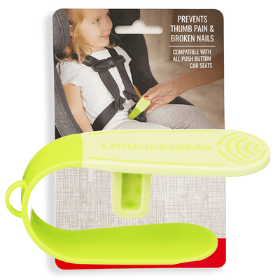 As Seen on Shark Tank, UnbuckleMe is a small tool that makes it 50% EASIER to unbuckle a child’s car seat. It makes it easier for parents and grandparents who struggle to push the red button. It does not attach to the car seat, for safety. Works on all push-button car seat buckles in the USA.
