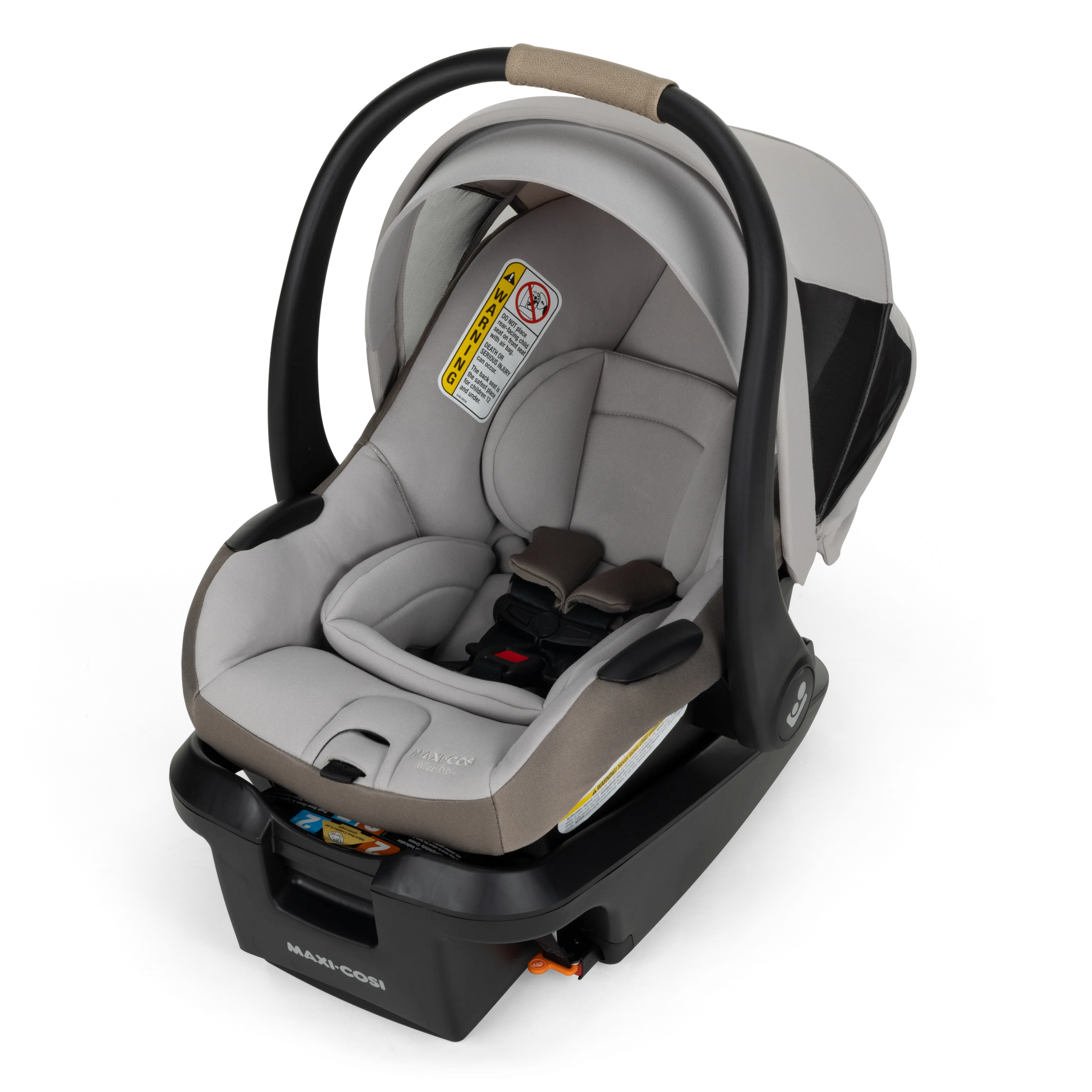 The lightweight Maxi-Cosi Mico® Pro+ Infant Car Seat is designed for comfort and convenience and allows you to travel with ease. The 1-hand release makes it easy to move from car to car or to a compatible stroller without a struggle. Our infant car seat carrier is designed with a contoured, ergonomic handle, trimmed in vegan leather, so parents will enjoy a more comfortable carrying experience.