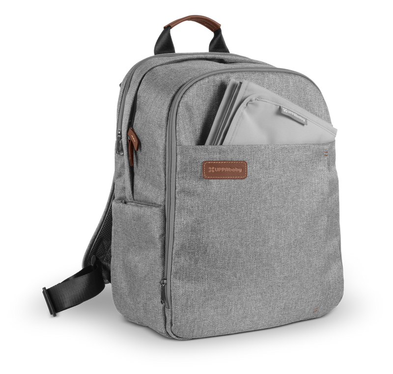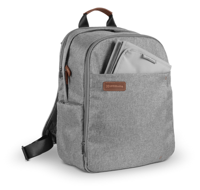 The UPPAbaby Changing Backpack combines style and function with a revamped interior layout, dedicated laptop storage, and convenient travel features designed to keep parents organized on the go. Premium fabrics and leather accents provide a custom look that coordinates with UPPAbaby strollers, seamlessly transitioning from work days to play days.