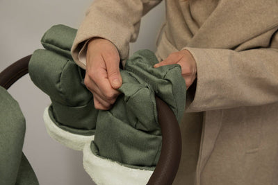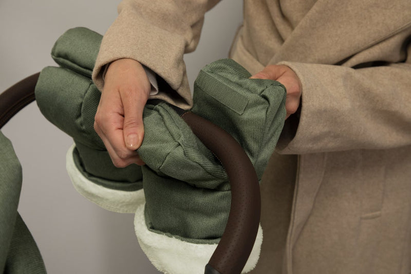 The UPPAbaby Cozy Handmuffs provide the ultimate protection for your hands while conveniently remaining attached to your stroller handlebar when you need to tend to your little one.