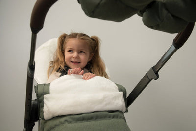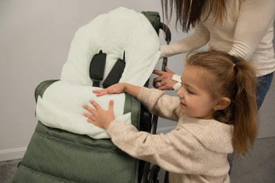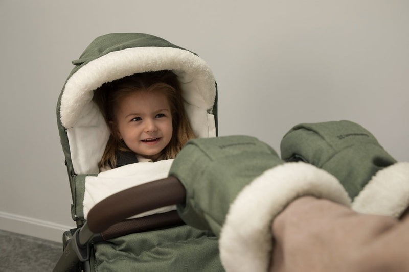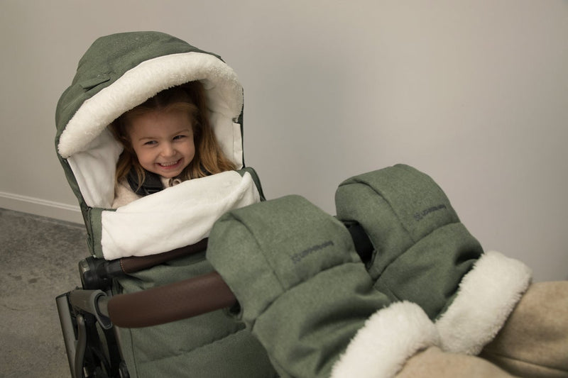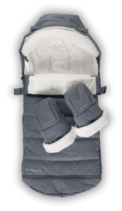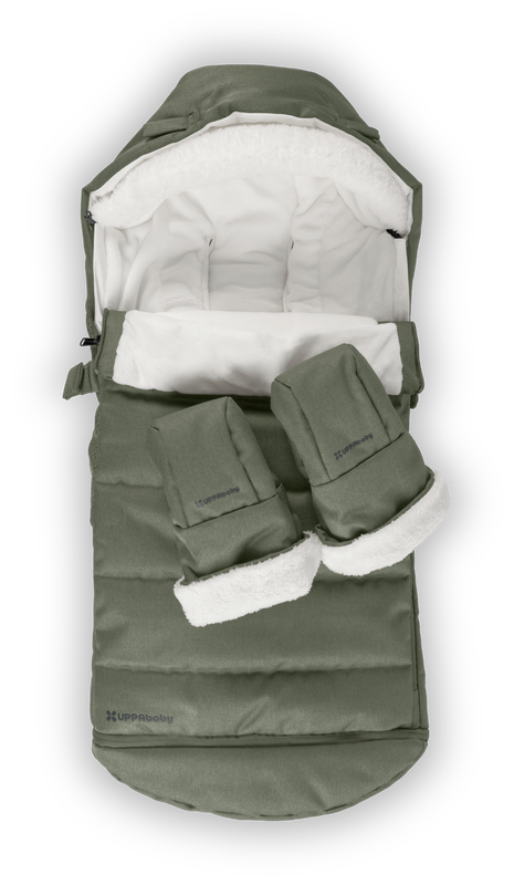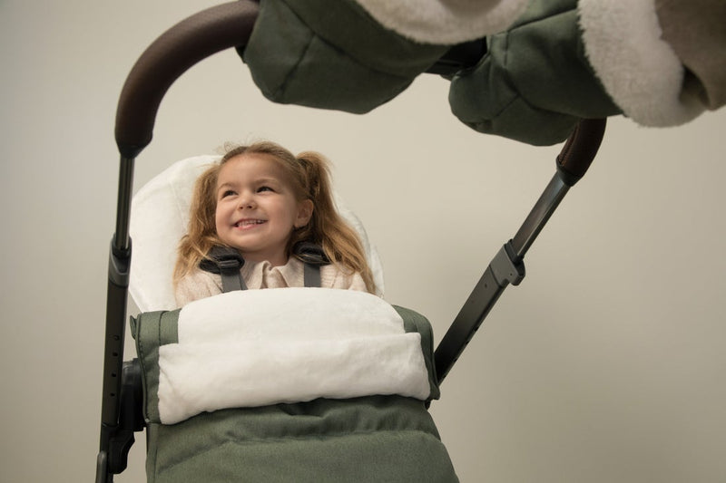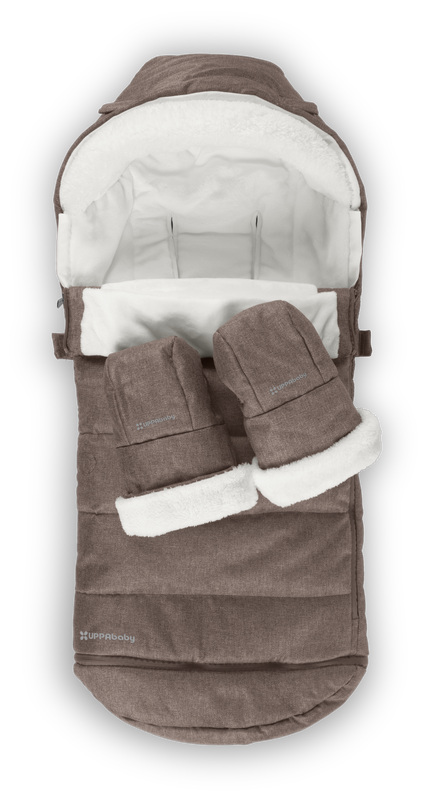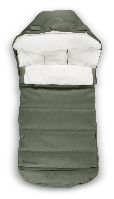 The ultra-plush CozyGanoosh footmuff provides ultimate coverage to keep your child toasty warm in inclement weather.