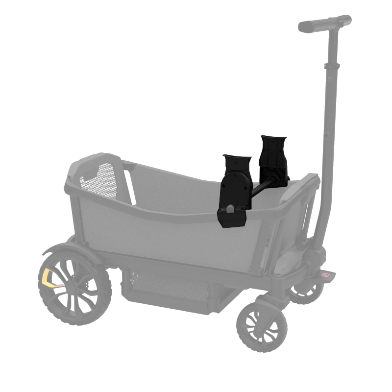 Our ICS adapters for major brands of infant car seats quickly and intuitively fasten to the Cruiser frame, enabling infants to live the Veer experience. You may place your car seat in any of four positions: facing you, facing the outside world, and above the front or back seat of Cruiser. Designed for Britax, Chicco, Graco, Cybex, Nuna & Maxi-Cosi seats.