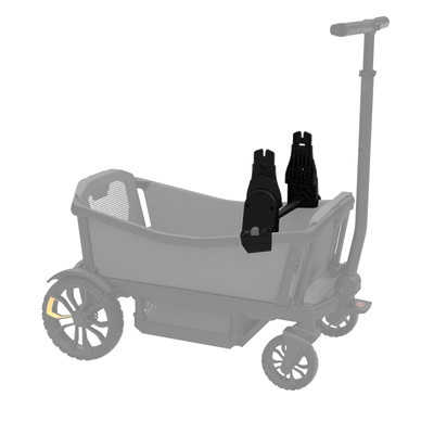 Our ICS adapters for major brands of infant car seats quickly and intuitively fasten to the Cruiser frame, enabling infants to live the Veer experience. You may place your car seat in any of four positions: facing you, facing the outside world, and above the front or back seat of Cruiser. Designed for Britax, Chicco, Graco, Cybex, Nuna & Maxi-Cosi seats