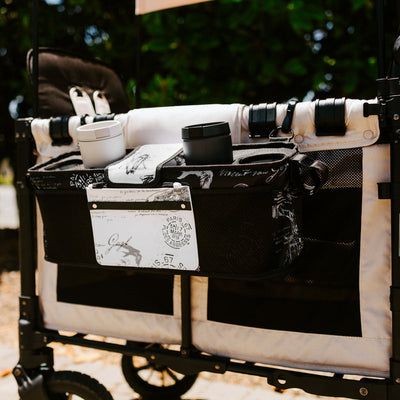 This must-have wagon accessory features insulated cup holders, exterior pockets for quick access, and a versatile removable clutch.