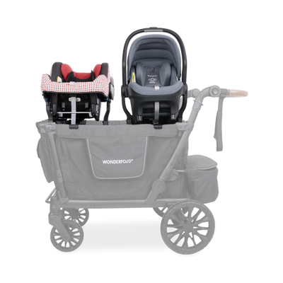 Only one car seat adapter may be installed on W2 models for Nuna, Cybex, Maxi-Cosi, Clek, Graco, Chicco, and Britax.