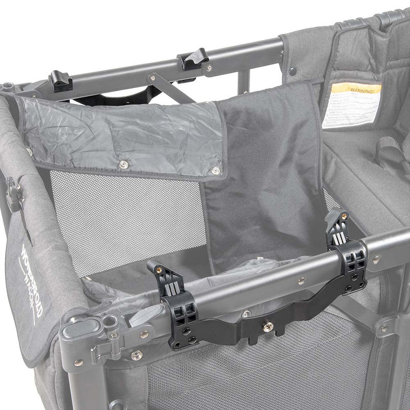 Attaches to one side of the stroller wagon, leaving the other side open for a seat or bench seat