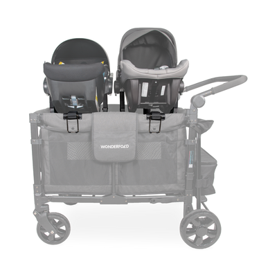 Can also fit 2 on W2 Elite/Luxe models for UPPAbaby only. Both bench seats can be removed to accommodate two car seat adapters.