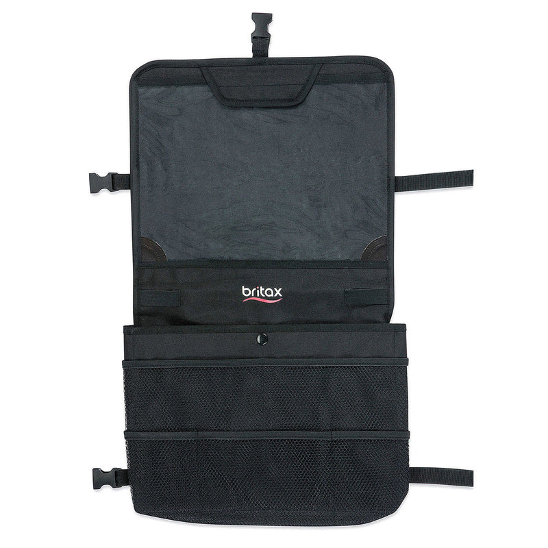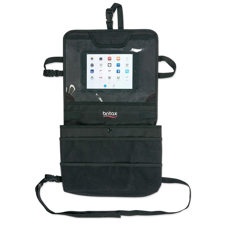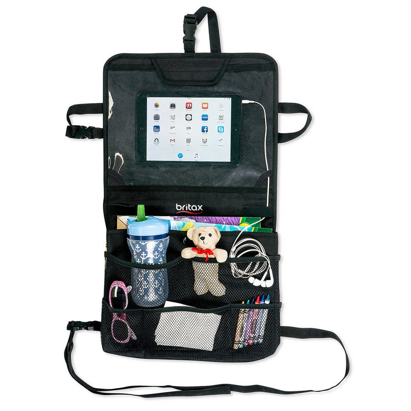 Make car rides more for enjoyable for your little one with the BRITAX View-N-Go Backseat Organizer. Multiple pocket design easily attaches to the back of front seats so you can install a tablet and store toys, snacks, books, and more when on the go.