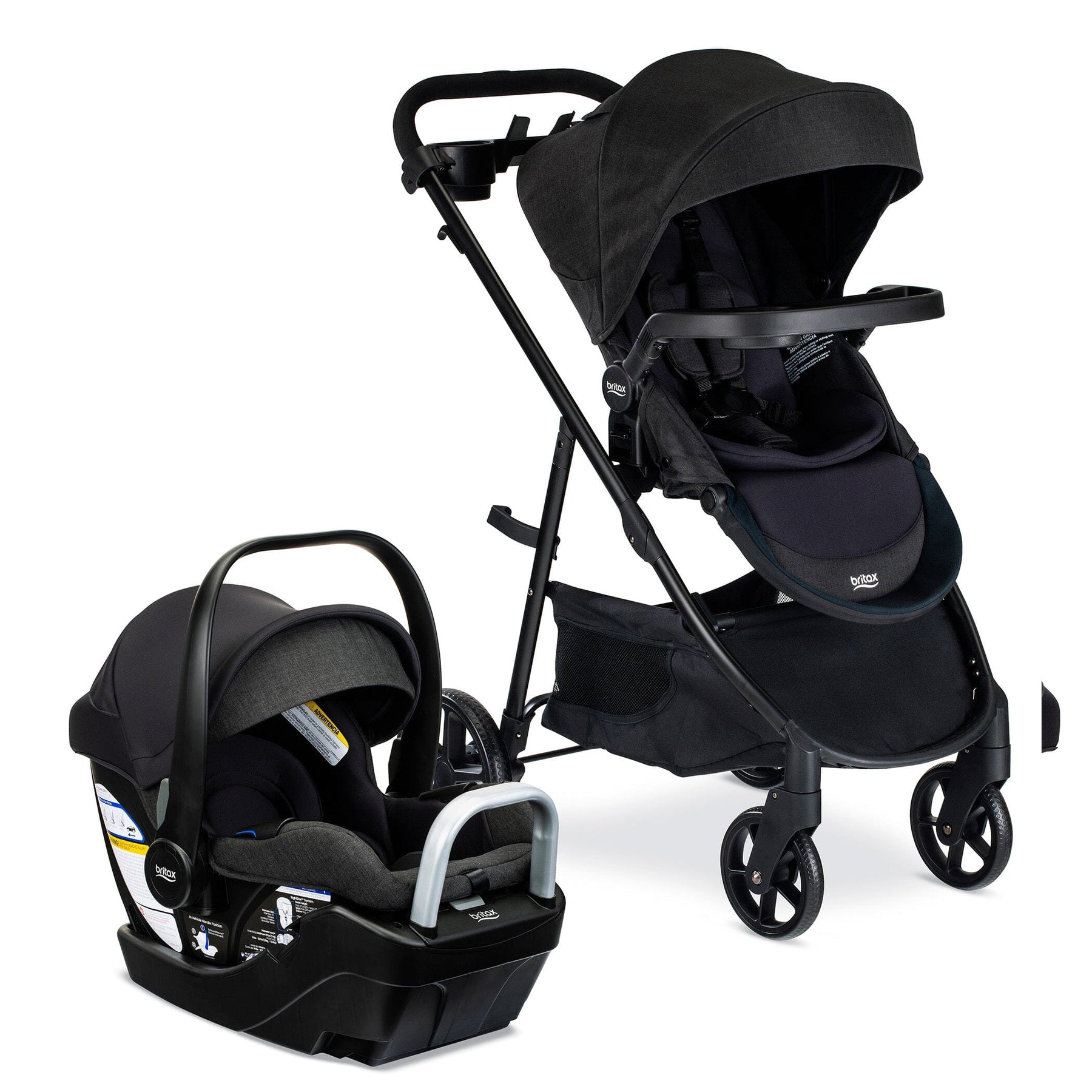 Infant Car Seat and Stroller Combo: The Willow Brook™ S+ baby and toddler travel system includes the Willow™ S infant car seat, Alpine™ base, and Brook™ + modular stroller, plus a SafeWash® seat insert, parent tray, and child snack tray.