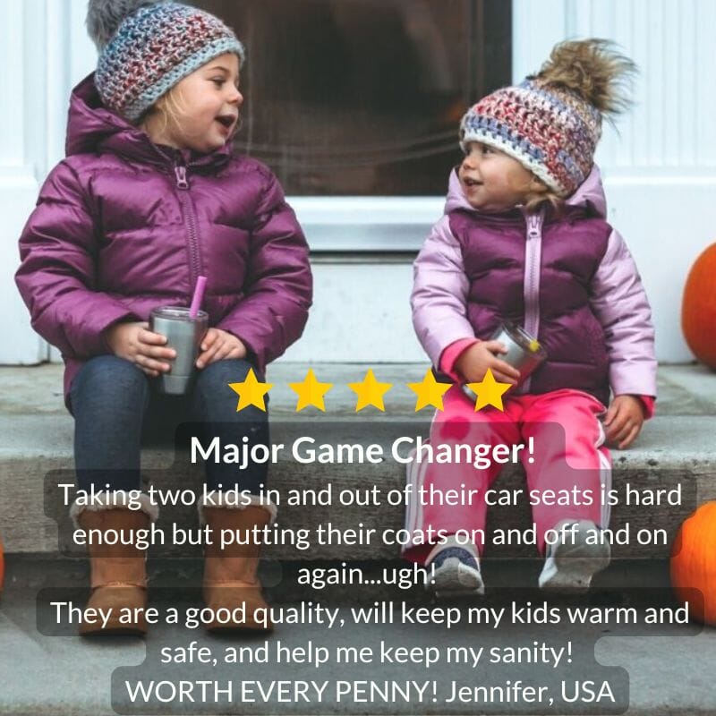 Trusted by parents since 2016, The Road Coat is the safest and warmest car seat coat. Perfect for school drop-offs, snow adventures, or everyday winter wear.