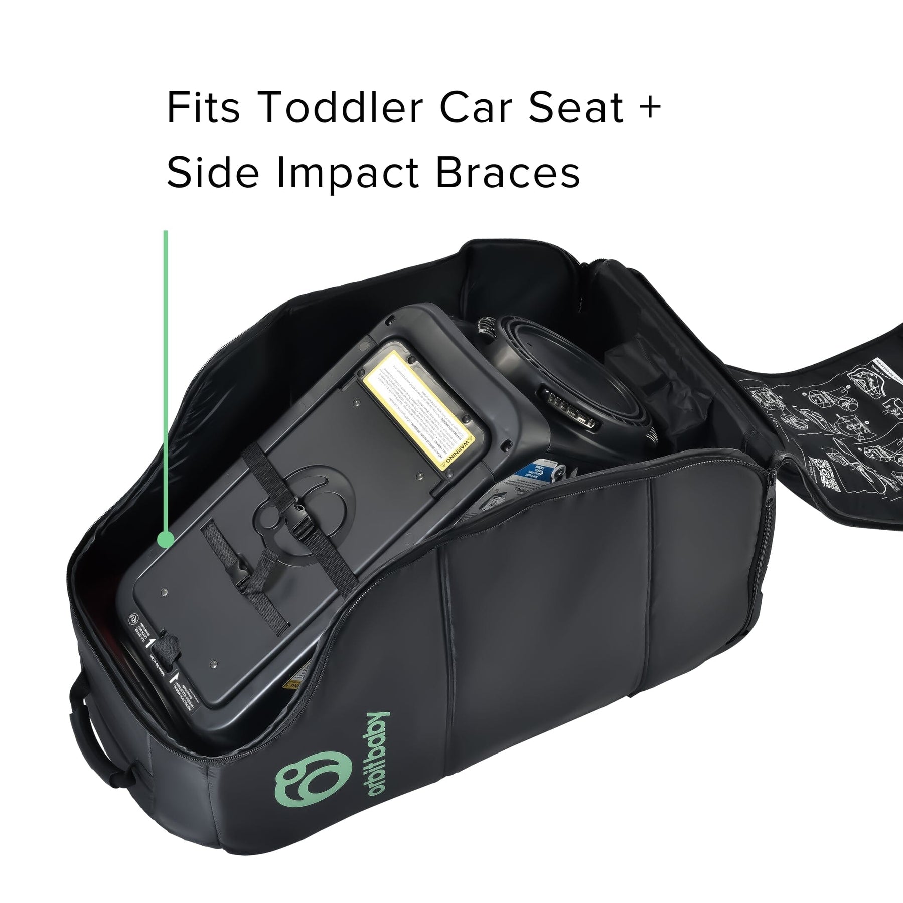 Rolling luggage bag and backpack designed to fit the Orbit Baby Infant Car Seat, Toddler Car Seat and Car Seat Base.