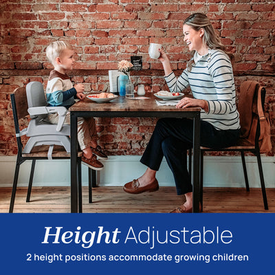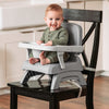 The Bento Booster™ brings your little one right to the table with non-marking feet and secure straps that attach to most dining chairs. An adjustable three-point harness and two height positions ensure a safe, comfortable fit as your toddler grows. The snap-on tray is dishwasher-safe and folds directly into the seat for compact, hassle-free storage.