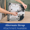 Includes adjustable straps for an alternate attachment option without the metal arm