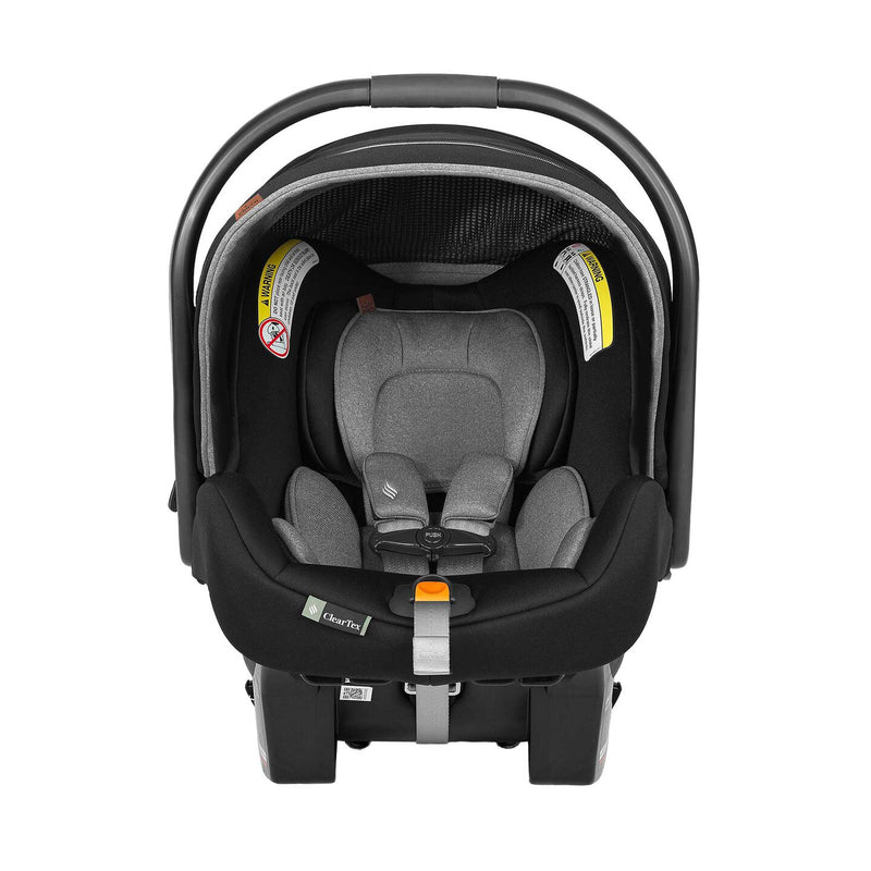 Designed for newborns and growing infants, this infant car-seat system blends premium comfort with advanced safety and convenience features. Its innovative ClearLux™ fabric eliminates added flame-retardant chemicals while maintaining high standards of protection and comfort. The ergonomic one-hand carry handle and compatible click-in base allow effortless transitions from car to stroller, turning travel time into seamless movement. With extended-use capacity, an adjustable headrest system, and an integrated anti-rebound bar, this seat supports more rear-facing months with your child — helping ensure a safe, comfortable ride from your door to wherever life takes you.