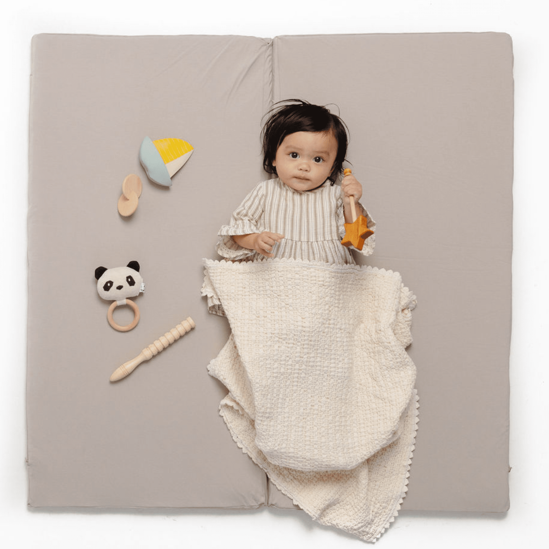 A buttery soft, non-toxic play mat made for tummy time, motor milestones, and everyday play.