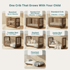 • 8-in-1 convertible crib (cradle, crib, toddler, day, and floor bed)