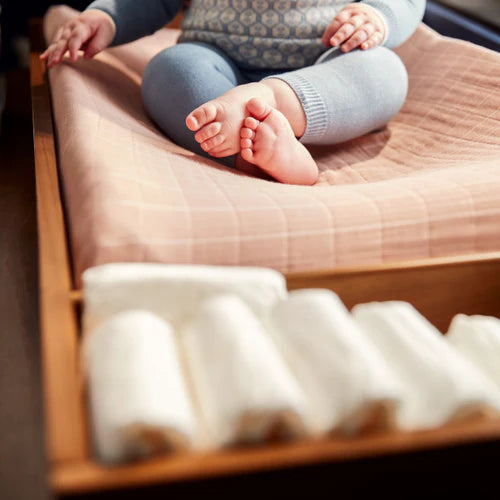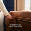 For added safety, the dresser includes an interlocking drawer system that limits how many drawers can be opened at once—helping prevent tipping accidents and ensuring peace of mind. When paired with the optional Double Topper (sold separately), the dresser transforms into a fully functional changing table—perfectly balancing style and practicality for your nursery.