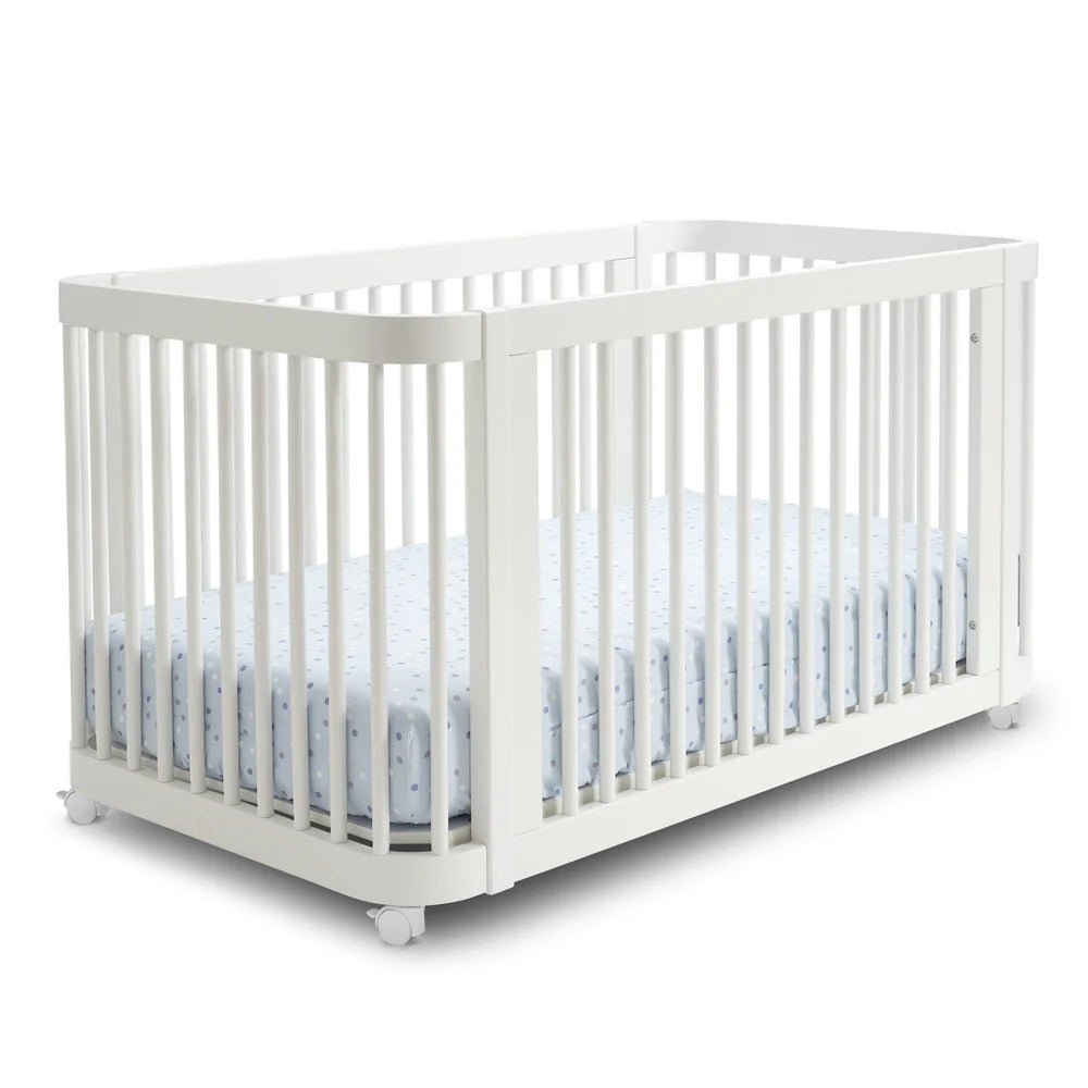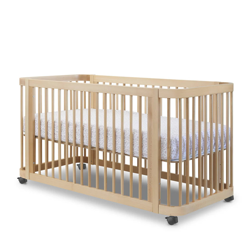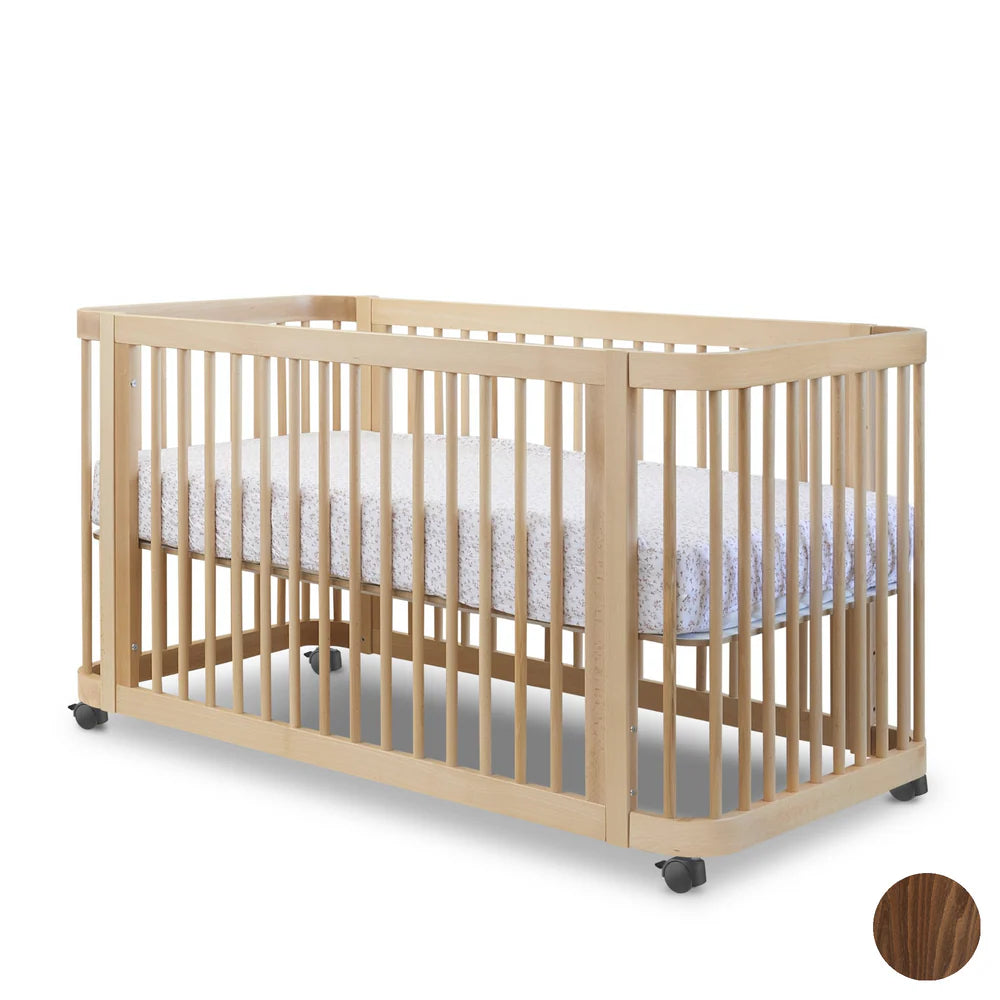 Crafted from durable beech wood, this versatile crib is designed to grow with your child from infancy through the toddler years. It easily converts from a mini crib to a full crib and then to a toddler bed, offering lasting functionality in one smart design. GREENGUARD certified, it supports a healthier indoor environment. The crib ships in two cartons and provides sturdy construction with thoughtfully designed dimensions for each stage.