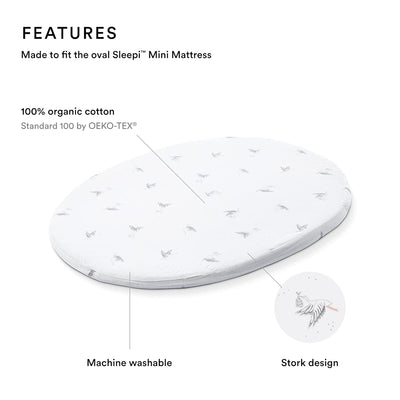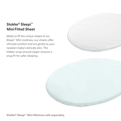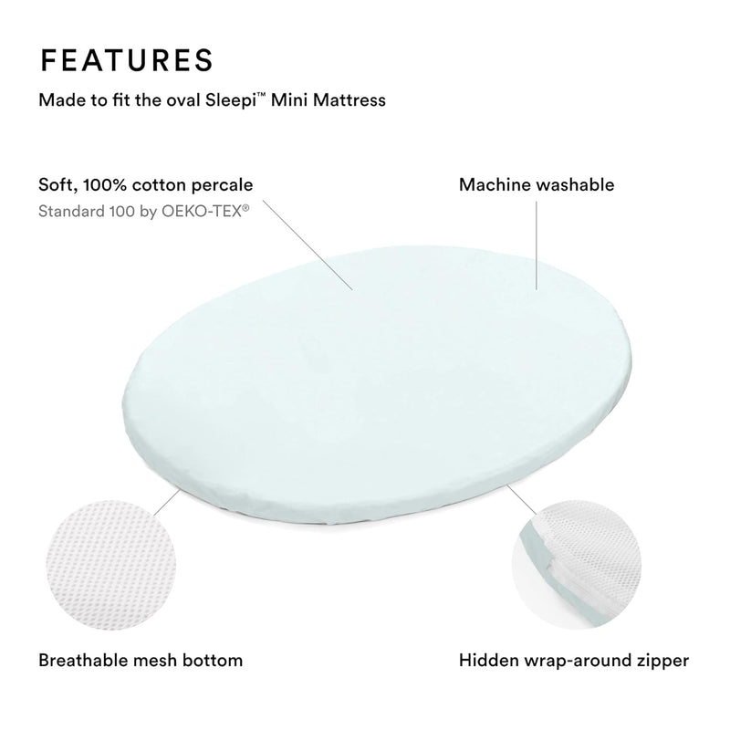 The Stokke Sleepi Mini fitted sheet is the only sheet designed to fit a Sleepi Mini mattress. The soft Egyptian cotton sheet is 100% fine cotton percale and Oeko-Tex standard 100 class 1 certified.