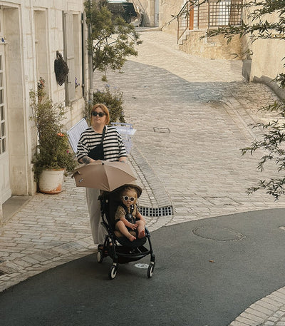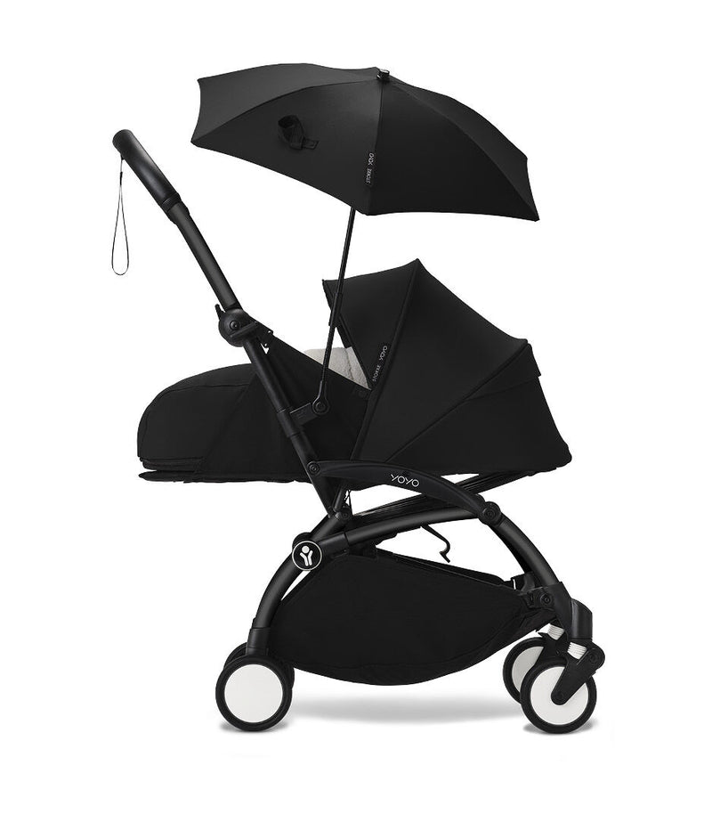 The parasol adapts to all versions of YOYO² (newborn pack, bassinet, YOYO car seat and 6+ pack) and can also clip onto the car seat. With UPF 50+ protection and enhanced opacity, it protects your baby from the sun more effectively than ever. Available in the full range of colors.