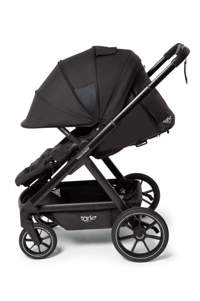 The Ark Single stroller easily converts from single to double, accommodating your growing family. It features a large basket for ample storage and smooth Infinity wheels for effortless maneuvering. The adjustable seat level and handlebar ensure comfort for both parent and child. Choose between parent-facing or world-facing modes, and enjoy versatile options with car seat and bassinet compatibility. Its easy fold design makes transportation and storage simple, making it a practical choice for everyday use.