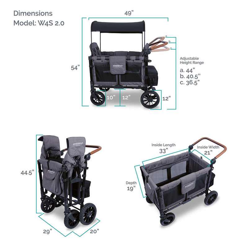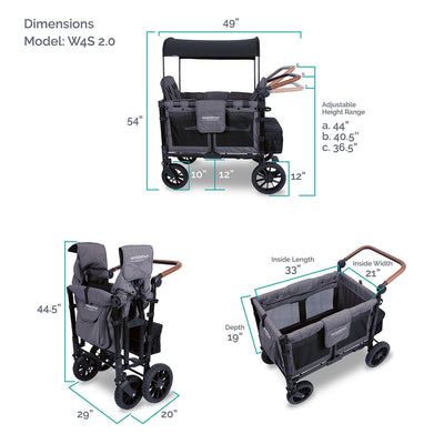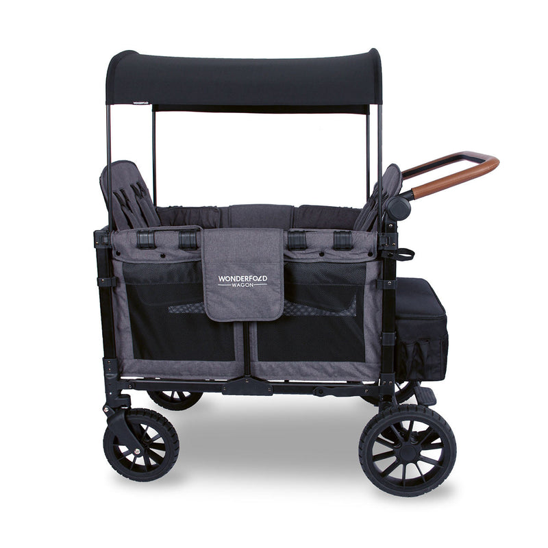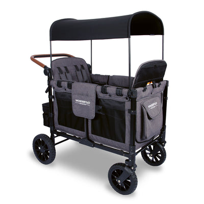WonderFold W4 LUXE Quad Stroller Wagon in Charcoal Gray with Black Frame